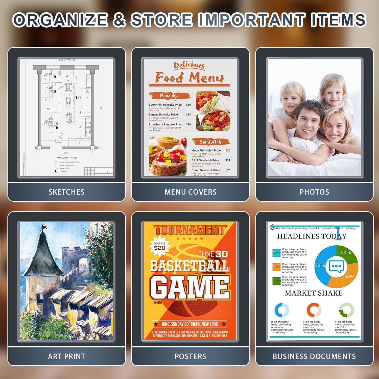 - Versatile Use: These heavy-duty sheet protectors are suitable for storing and organizing important paper, can be used as menu covers, poster sleeves, magazine protectors, document protectors, birth certificate protectors, diploma protectors and are widely used in offices, homes, schools, libraries, and restaurant