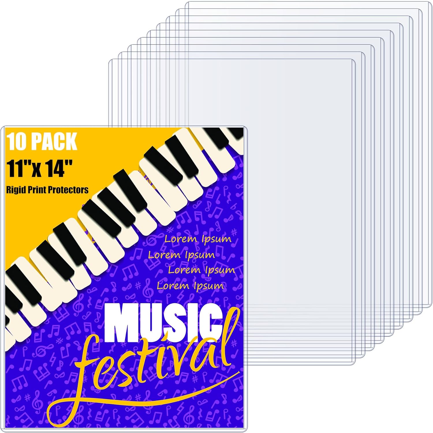 10PCS 11" x 14" Rigid Print Protectors Hard Plastic Sheet Page Protectors Heavy Duty Top Loading Menu Covers Poster Sleeves Clear Plastic Paper Sleeves for Magazine Prints Photo Document