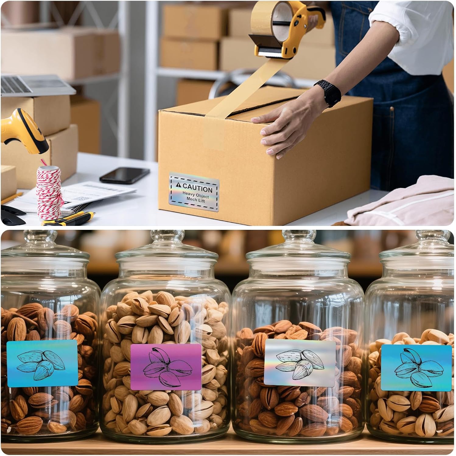 3x2'' Holographic Thermal Labels,3 Rolls Square Label Sticker for Phomemo 241BT for MUNBYN 130B/RW402B Printer,600Pcs Waterproof Label Paper for Address/Logo/Barcode/Price/Thanks