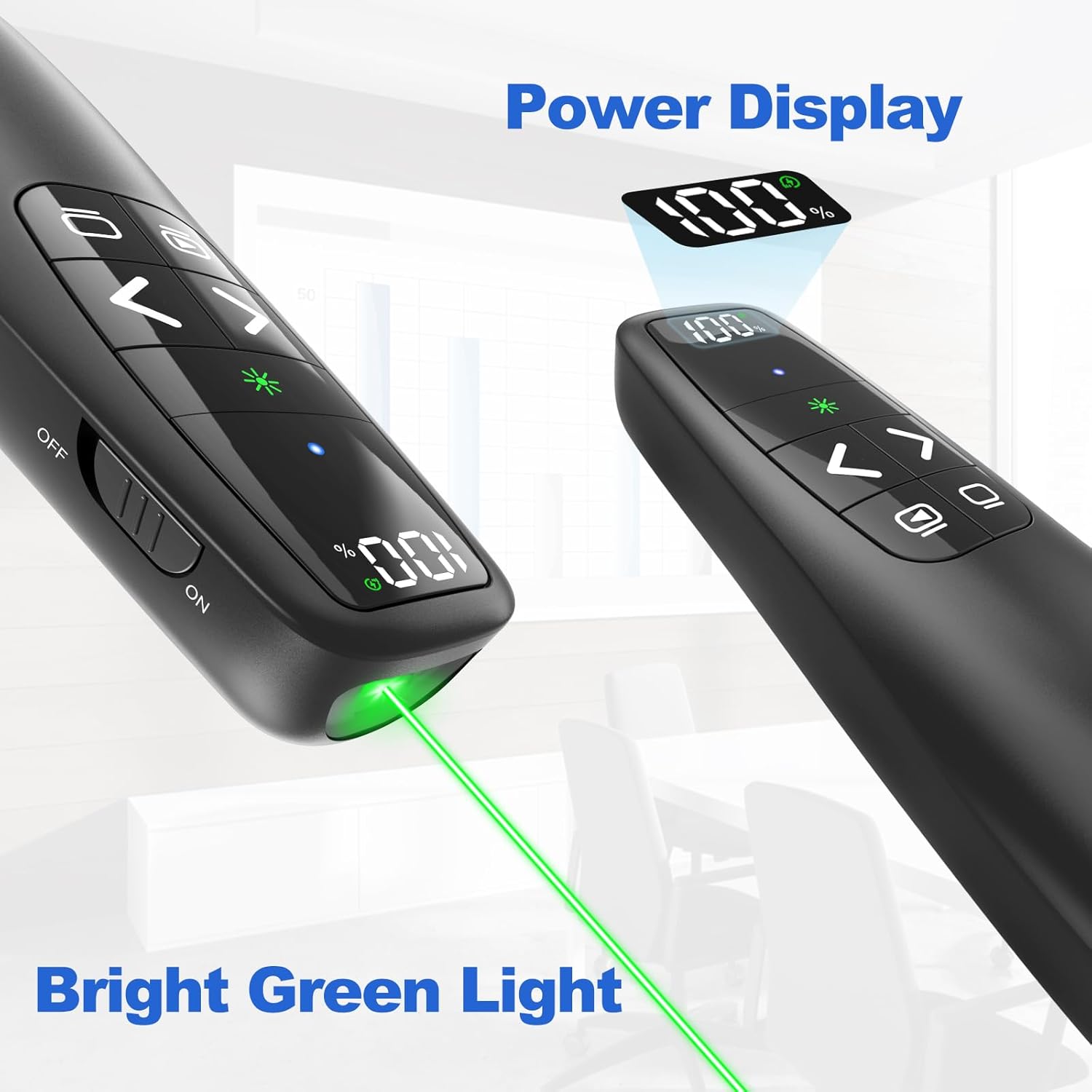 Rechargeable Presentation Clicker with Case, Power Digital Display Wireless Presenter Remote, USB C Green Light Pointer Computer PowerPoint PPT Clickers for Mac Laptop, Slideshow Google Slide Advancer