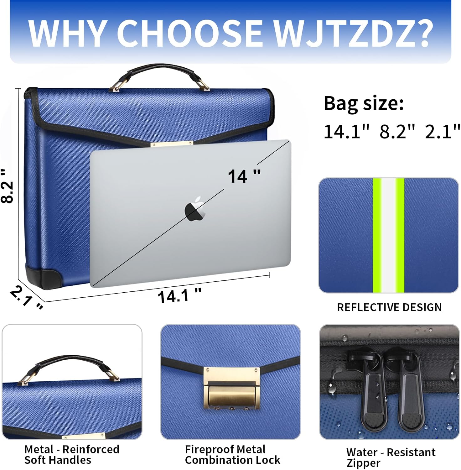 - ⛱️【360°Top Fireproof and Waterproof】The fireproof document bag is sewn with flame-retardant thread and fire-resistant hemming to prevent flames from damaging the fireproof bag from the edges, and it has a unique double-sided two-color reflective strip, allowing you to easily find it in the dark.The sealed waterproof zipper, combined with the Velcro flap design, can withstand the high-speed spray of the fire hose and prevent fire, heat, and smoke from entering the fireproof bag.