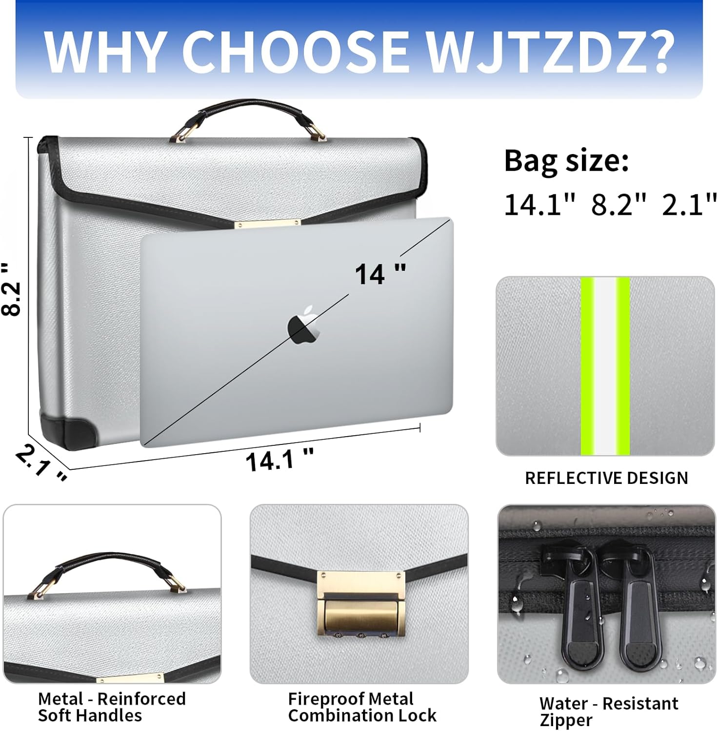 - ⛱️【360°Top Fireproof and Waterproof】The fireproof document bag is sewn with flame-retardant thread and fire-resistant hemming to prevent flames from damaging the fireproof bag from the edges, and it has a unique double-sided two-color reflective strip, allowing you to easily find it in the dark.The sealed waterproof zipper, combined with the Velcro flap design, can withstand the high-speed spray of the fire hose and prevent fire, heat, and smoke from entering the fireproof bag.
