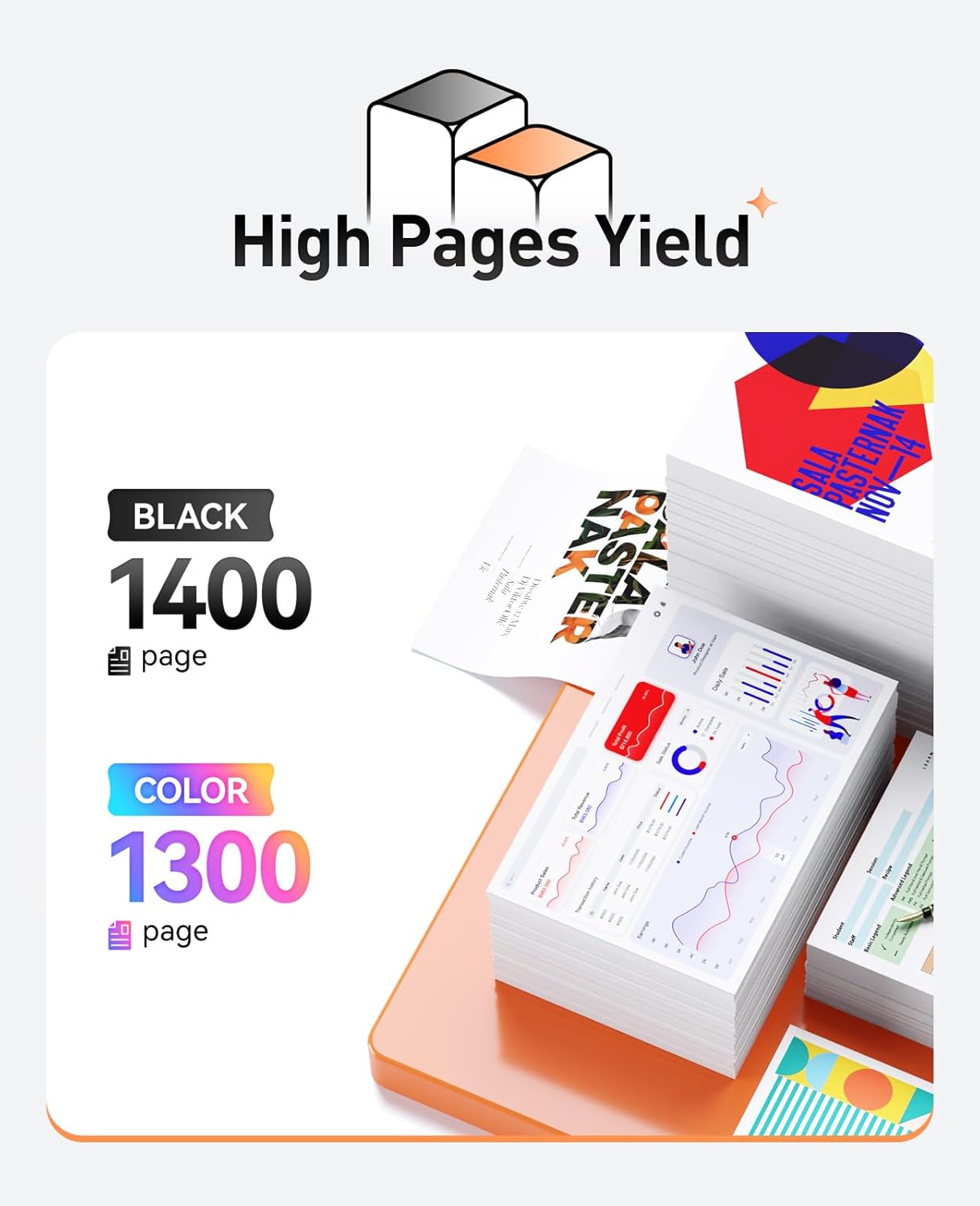 - High Page Yield: Up to 1,400 pages per TN223 black toner cartridge,up to 1,300 pages per color (at 5% coverage of A4 Paper).