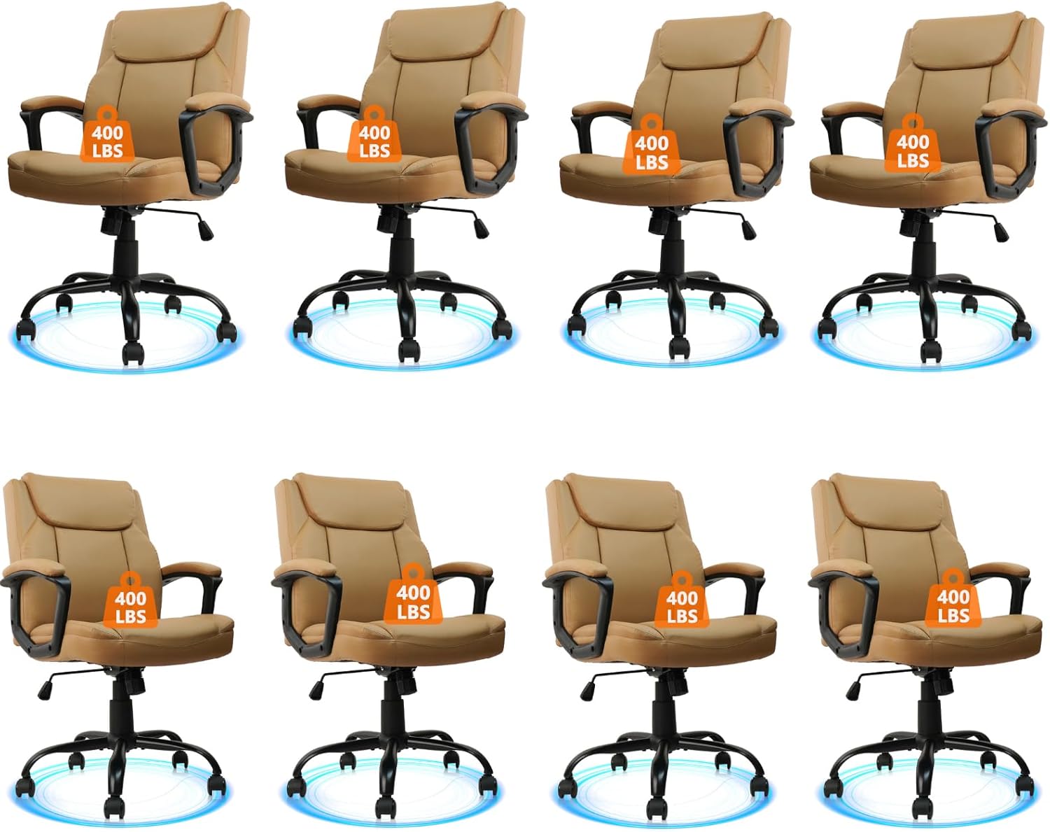 - 🔧【Easy Installation】- The office chair comes with all hardware, necessary tools and installation instructions, you can install it very easily. This brown leather office chair is suitable for office, game room, living room, bedroom, study and more.