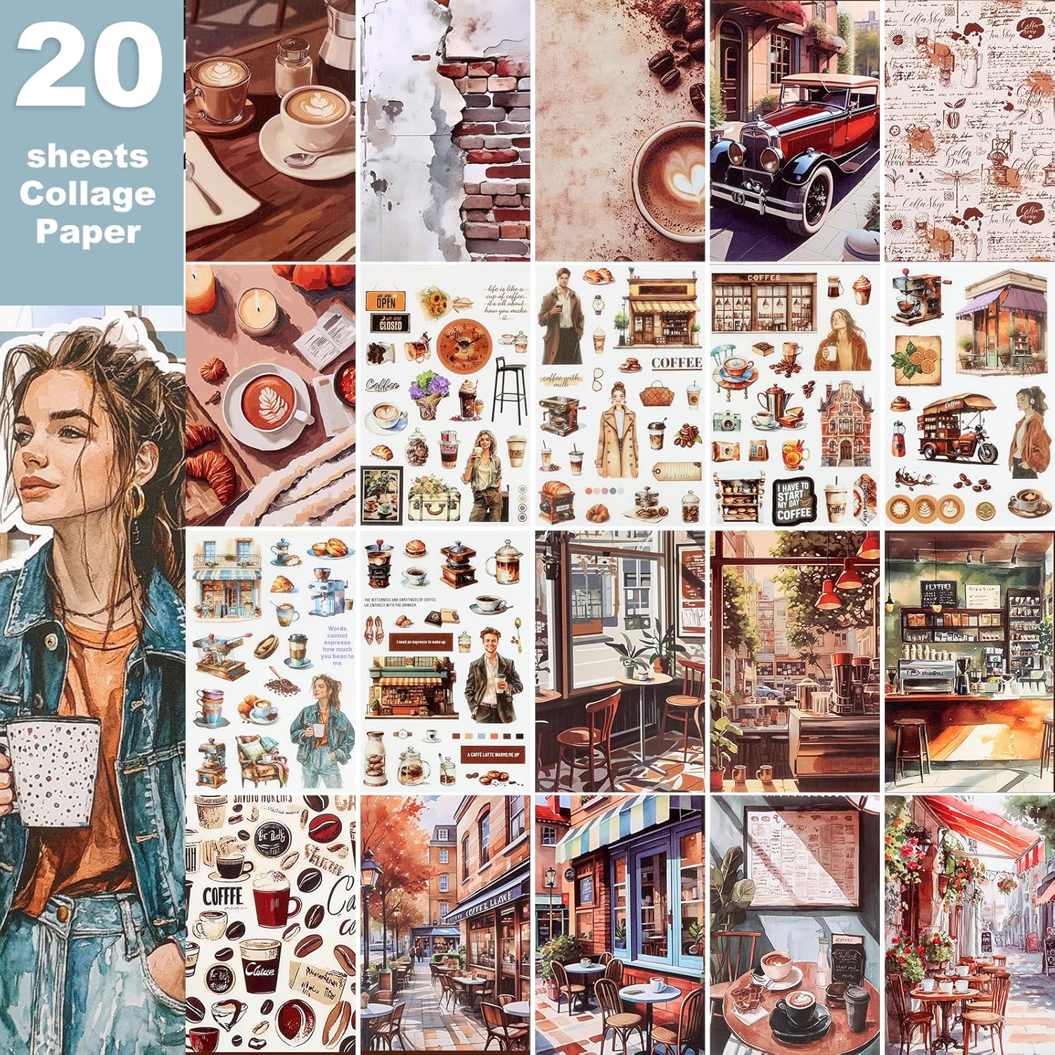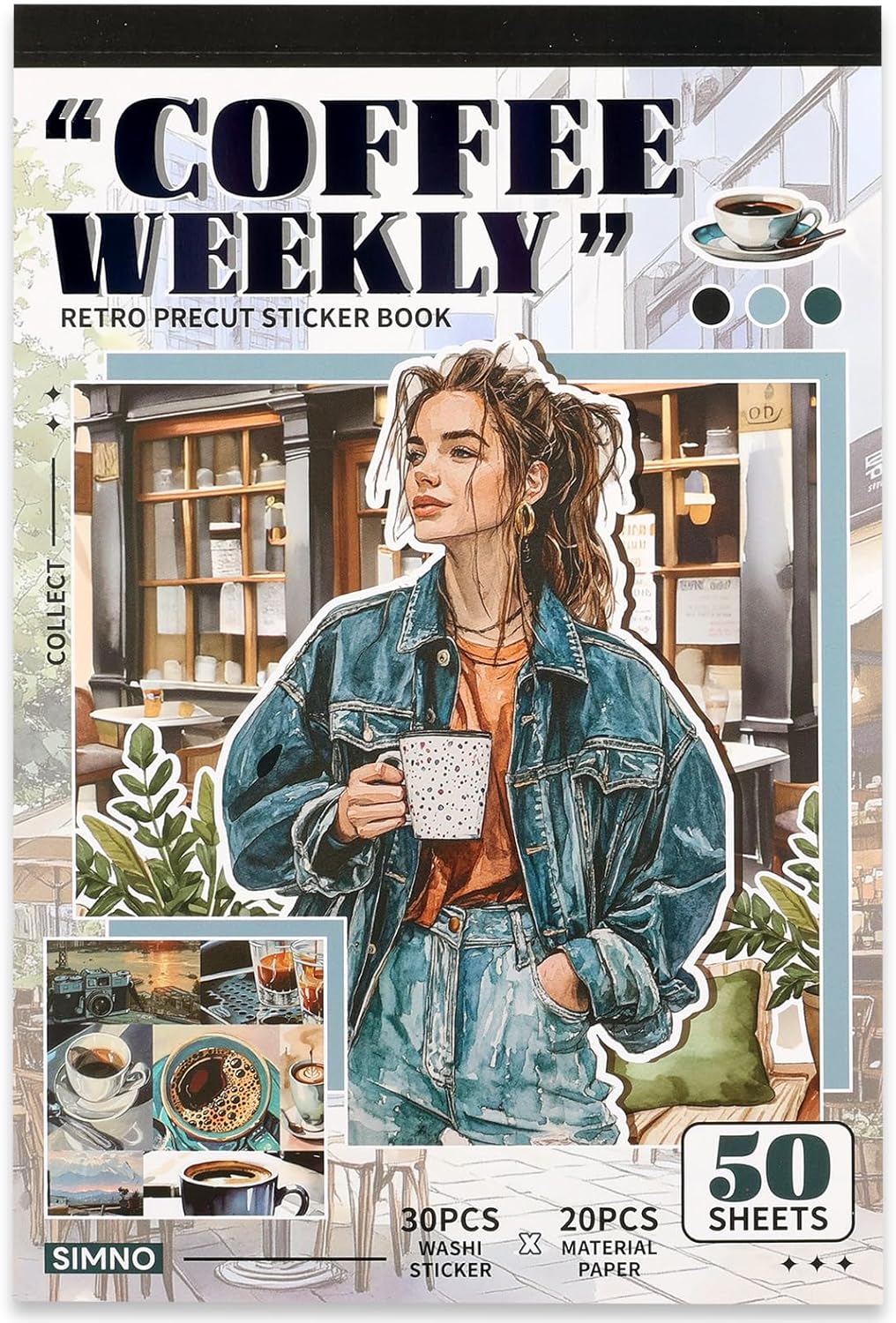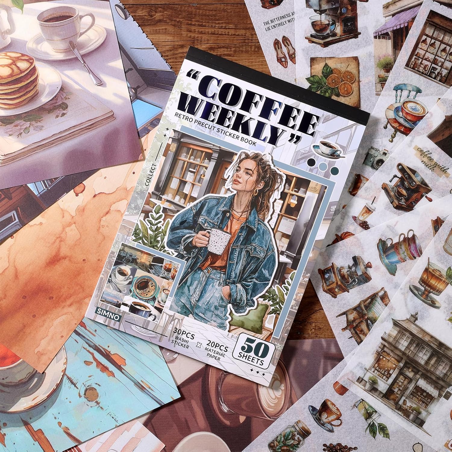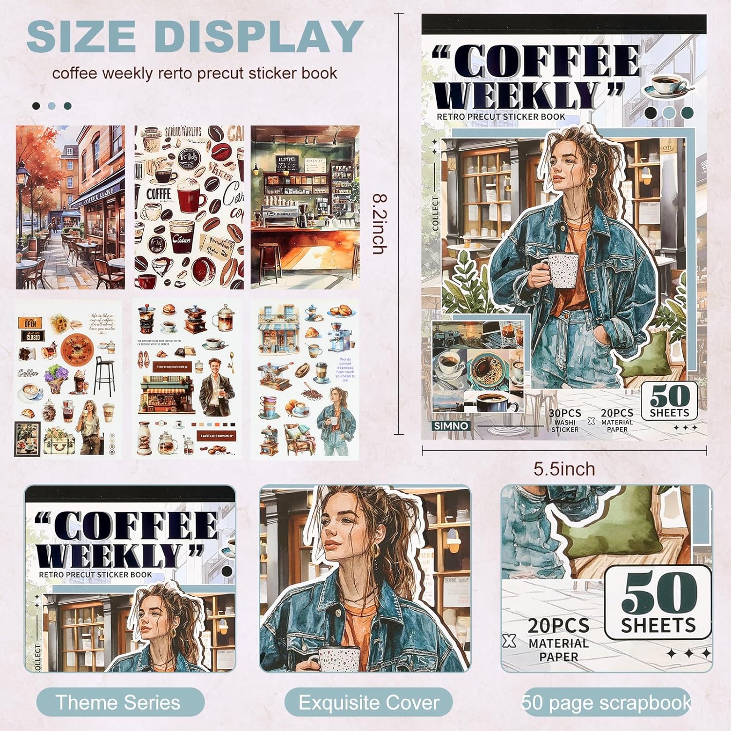 Scrapbooking Stickers - 500 Pre-Cut Washi Stickers & 20 Scrapbook Papers Coffee and People Sticker Books for journaling Scrapbooking Supplies
