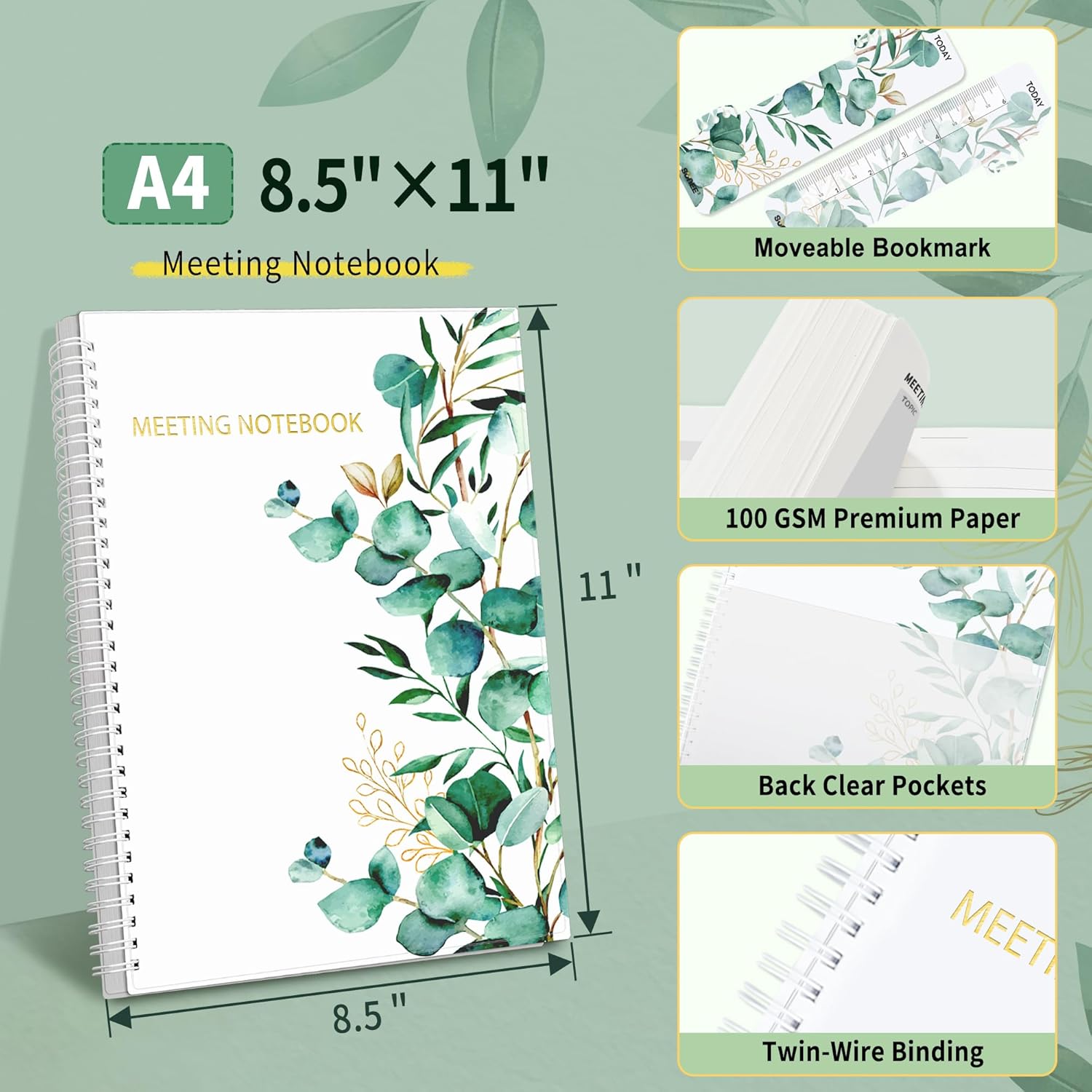 - Fight Ink-bleeding & Great Size: The high-end 100gsm paper could prevent ink bleeding through or feathering, handle double-sided writing and most daily use pens pretty well. The office/business work notebook measures 8.5"x 11"(similar to A4 size), Generous size provides ample space to jot down your meeting notes.
