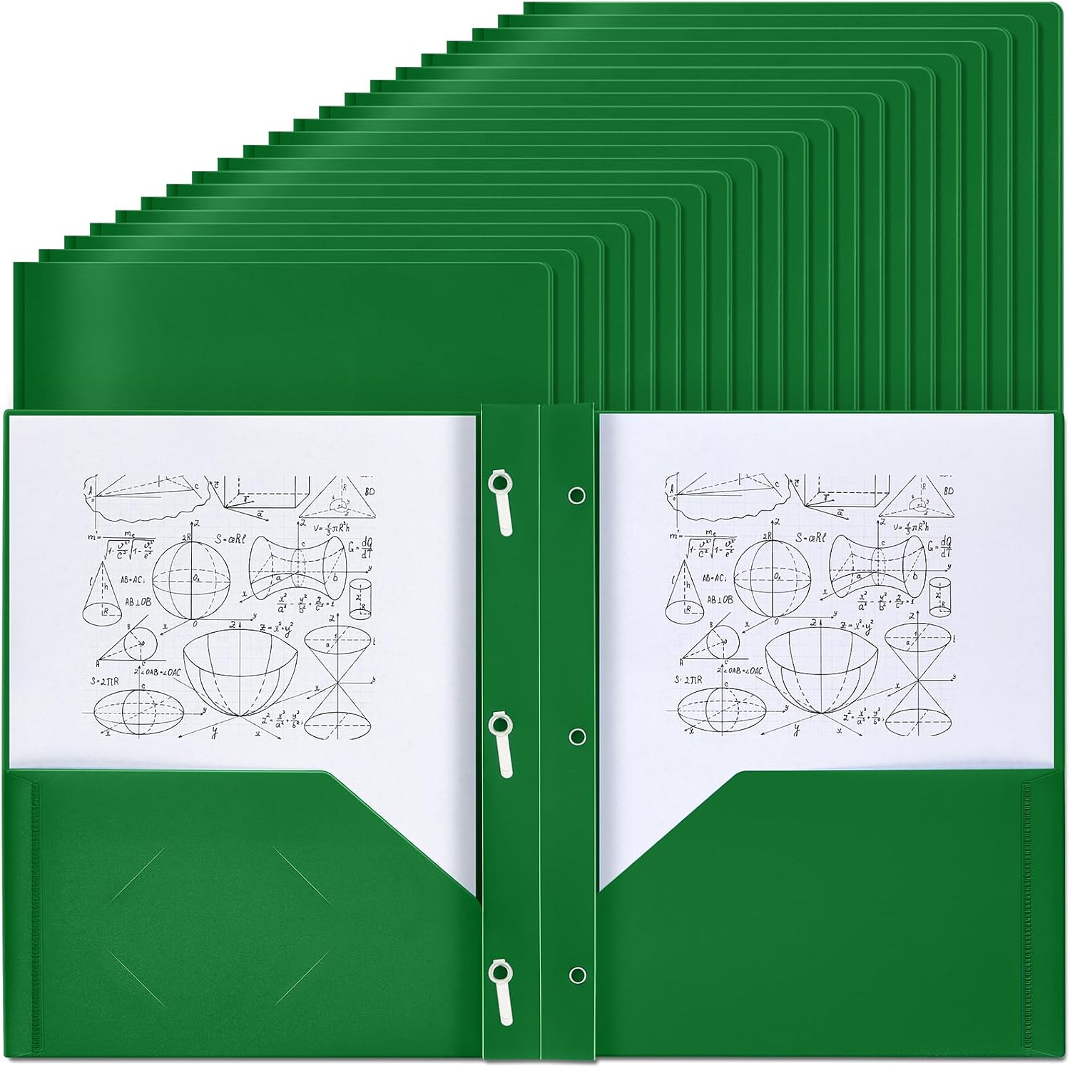 Lincia 100 Pcs Plastic Folders with Pockets and Prong Folders with Prongs 2 Pockets for Office, School for Students, Teachers, Office Workers(Deep Green)