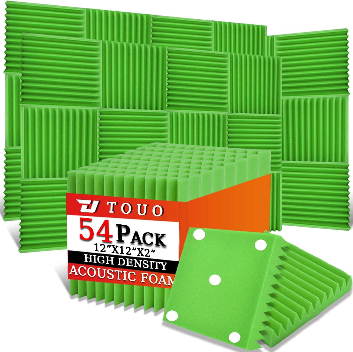 54 Pack Acoustic Panels – Sound Proof Foam Panels for Wall 12"x12"x2", Flame Retardant Wedge Acoustic Foam, High-Density Sound Absorbing Panels for Home Studio(Green, 2" Thick 54 Pack)