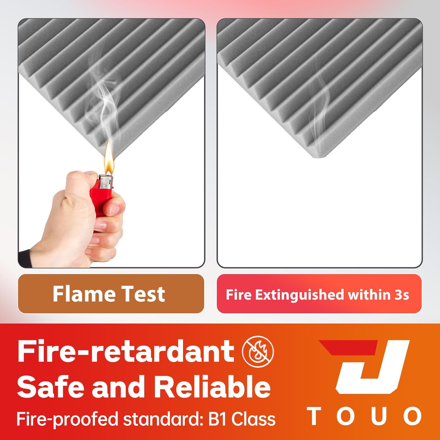 - ★ 【FIRE-RESISTANT & SAFE】:Our high-density acoustic foam features built-in flame-resistant properties, allowing it to self-extinguish within 1 minute when exposed to fire, preventing flame spread and reducing fire hazards. Designed with strong fire resistance and breathability, these acoustic panels sound absorbing help reduce fire hazards while maintaining durability. Made from pure polyurethane, they are non-toxic, odor-free, and safe for daily use, ensuring healthy indoor air quality. These soundproofing panels for walls and sound deadening panels work as an effective noise blocker for rooms, enhancing overall wall soundproofing panels.