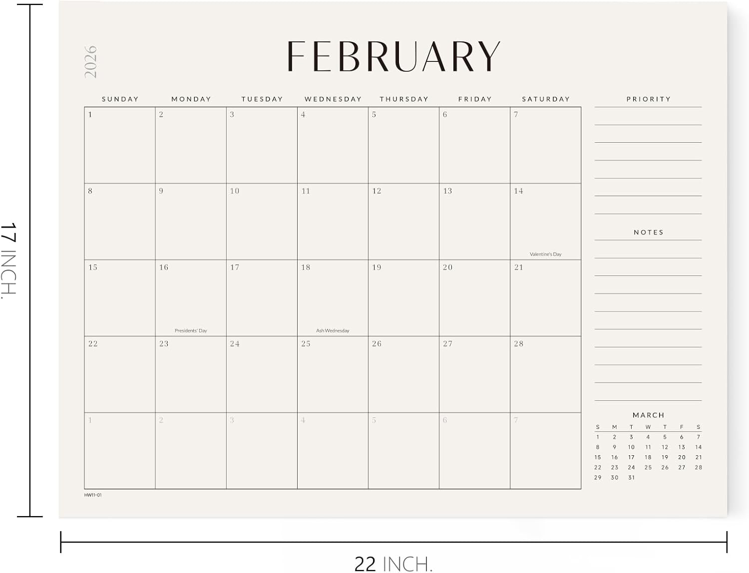- ENHANCE YOUR EFFICIENCY: This desk calendar (22" x 17") is the ideal size to place it on your desk or hang it on your wall . It's a useful tool for seeing all of holidays, birthdays, appointments, deadlines, and staying on top of your important arrangements