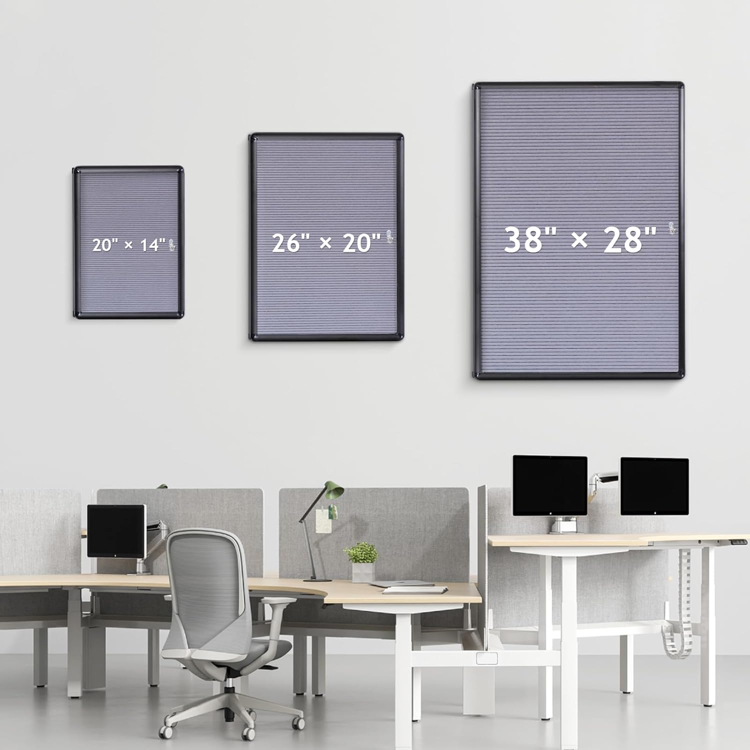S SWANCROWN Enclosed Bulletin Board with Locking Door 26x20 in, Lockable Felt Letter Board Sign Tamperproof Message Board for Office School Home, Black Aluminum Frame, Grey