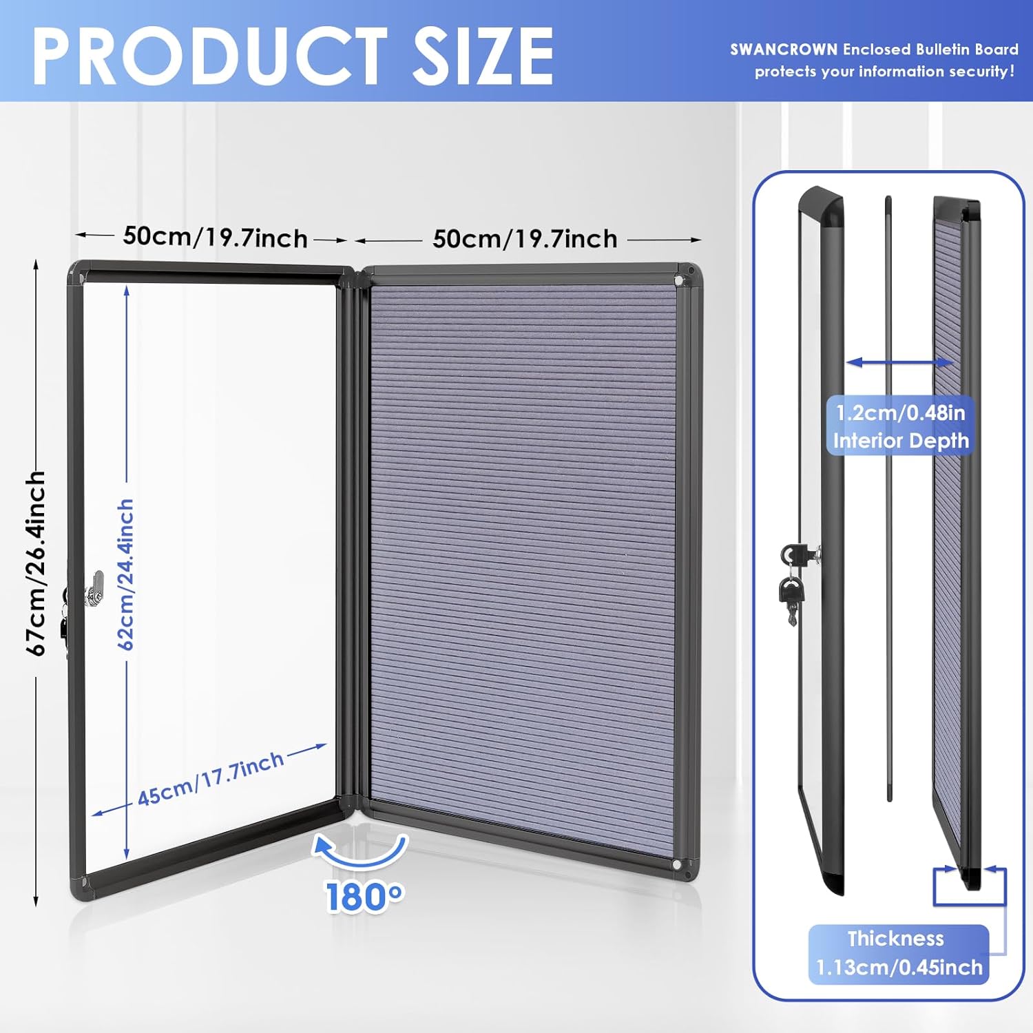 - 🔒 Secure & Durable Build —The lockable bulletin board features a sturdy aluminum frame, shatter-resistant acrylic door, and secure lock with 3 keys to protect content from tampering