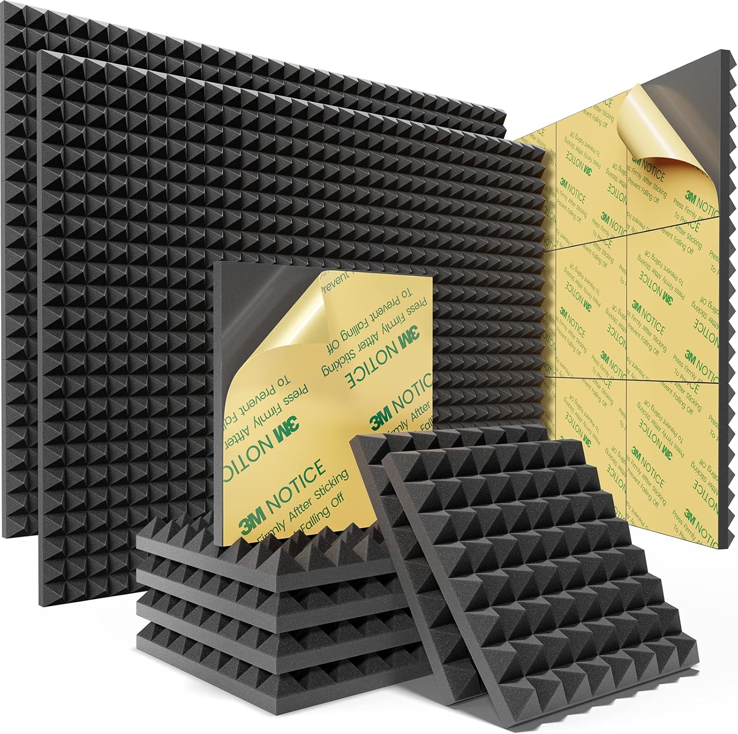 Sonicism Sound Proof Foam Panels for Walls Self-Adhesive Pyramid 48 Pack,12" X 12" X 1"Soundproof Wall Panels,35kg/m³High DensityAcoustic Panels Fast Expand,Sound Absorption and Decoration(Black)