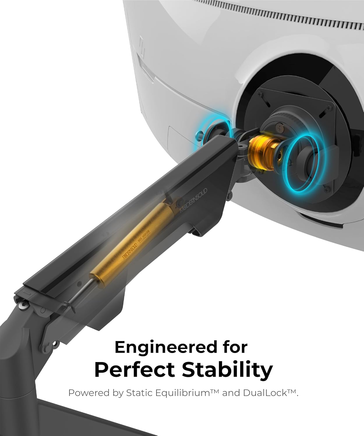 - SMOOTH GLIDE. STOPS EXACTLY WHERE YOU WANT. Powered by SmartFriction and DualLock, the arm moves with effortless precision and holds firm at any angle. Its advanced gas spring and linkage system delivers true Static Equilibrium, no drifting, no snap-back. It holds exactly where you leave it. You stay focused, not frustrated.