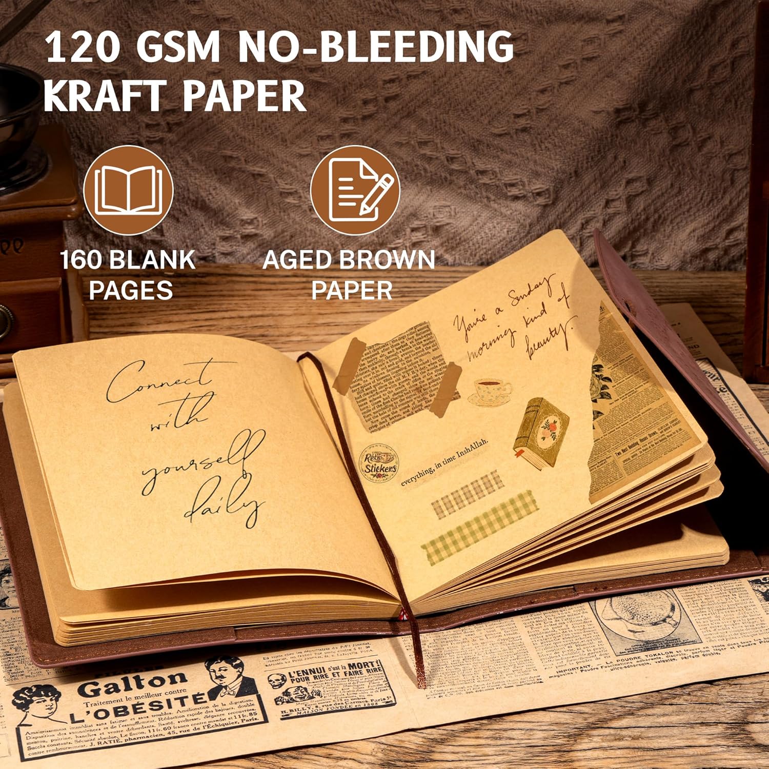 - PREMIUM KRAFT PAPER: The leather journal is made of 120 GSM aged brown colorkraft paper, which complements the cover. 160 pages sturdy blank paper for a smooth creative experience and not easy to bleed and ghost.