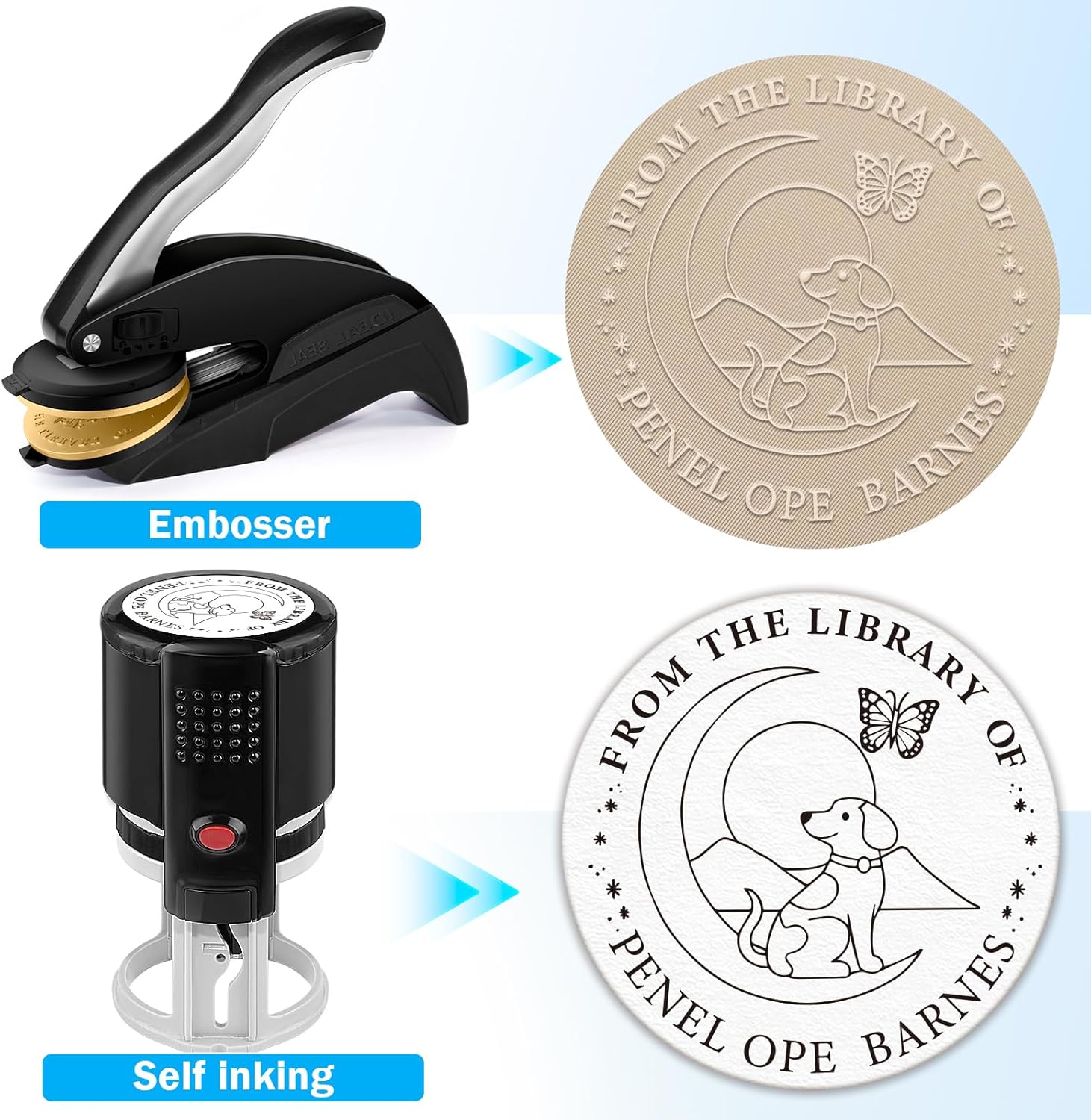 - 💌 【Product Size】 stamps are approximately 1.60" round impression area - this is standard for an Book Stamp. We offer Self Inking and Embossers.