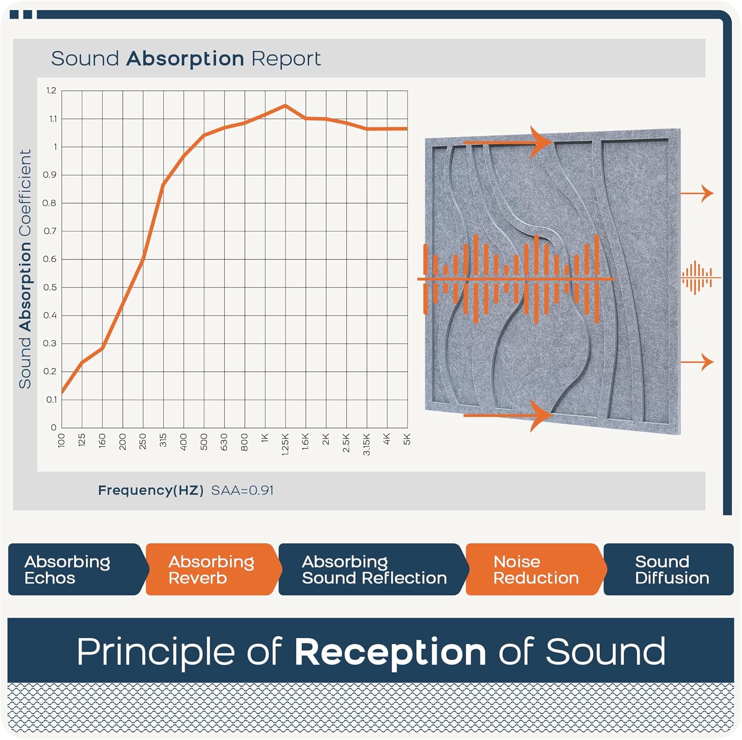 - š»ćSound Absorbingć Our acoustic panels which can easily and effectively reduce reverberation diffusion and echo, absorbing noise for walls. Effectively improve your sound environment and quality.Absorption Frequency: 150-20000HZ.