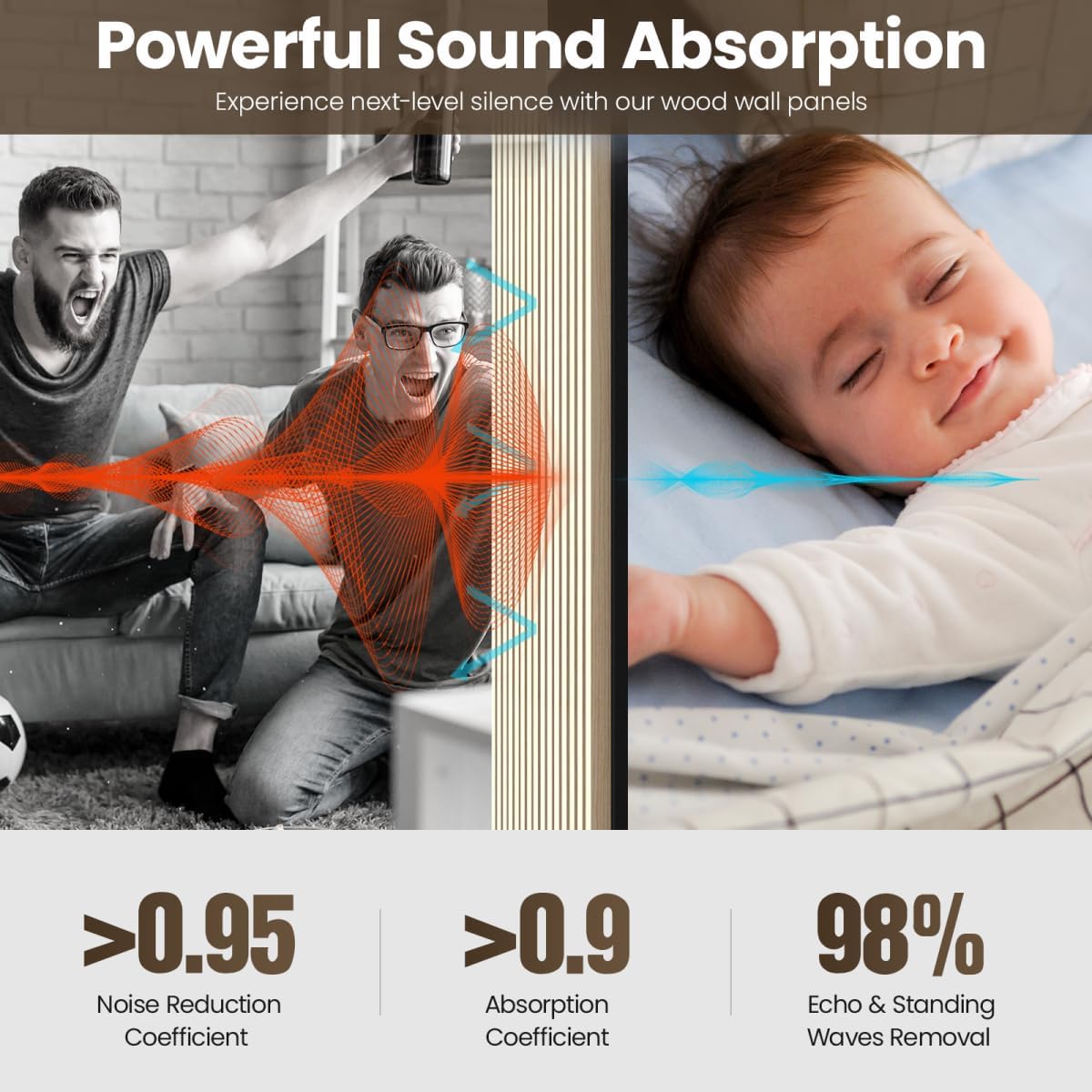 2 Pack Acoustic Wood Panels for Wall and Ceiling, 47.2" x 23.6" Wood Slat Wall Panel for Noise Reduction, Decorative Sound Proof Paneling for Office Studio Home Theater Kitchen Island, Oak