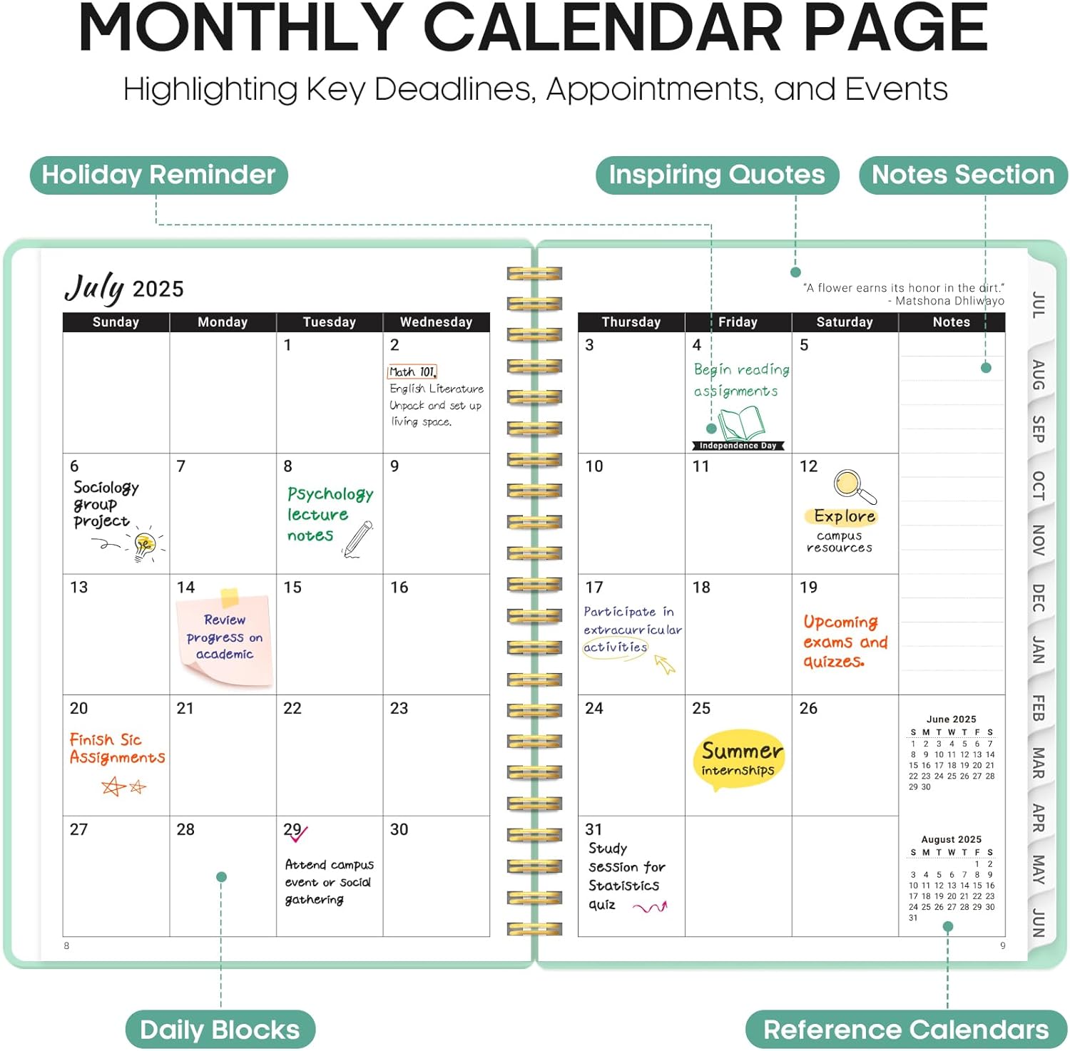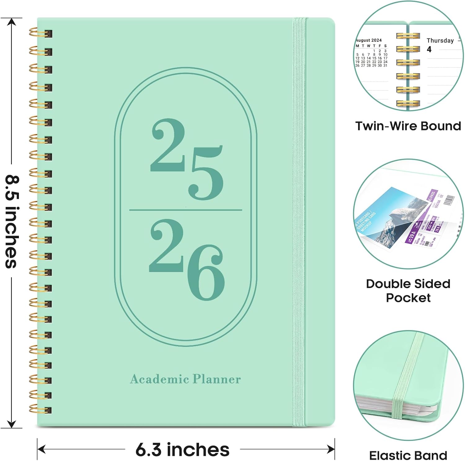 Planner 2025-2026, Academic Year Weekly and Monthly Calendar Planner, July 2025 - June 2026, Spiral Bound School Planning Tool, Perfect for Teacher, Student, Woman & Men - A5 (6.3" x 8.5"), Seafoam