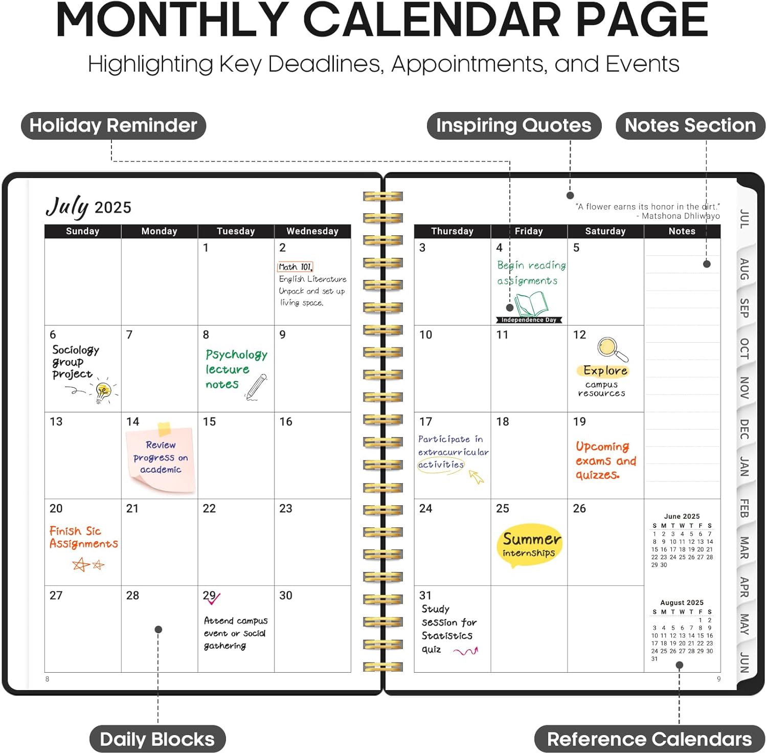- Comprehensive Planning:The planner covers the school year from July 2025 to June 2026, offering 12 months of planning. Monthly and weekly calendar pages provide ample room to manage your schedule, set goals, and track progress.