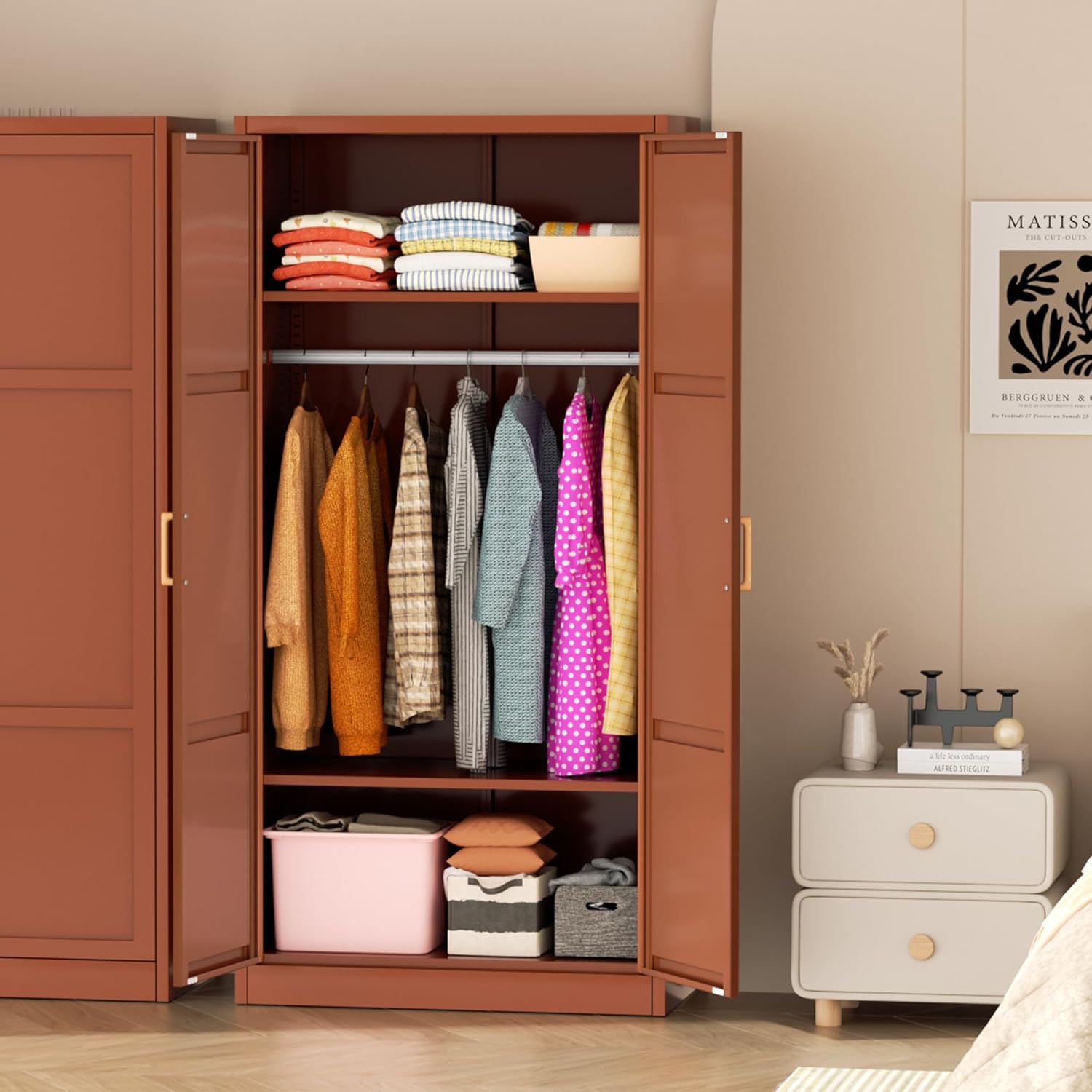 Greenvelly Metal Storage Wardrobe Cabinet, 72" Brown Metal Wardrobe Closet for Hanging Clothes with Doors and Shelves, Modern Steel Clothes Closet for Home, Office and Bedroom, School,Gym