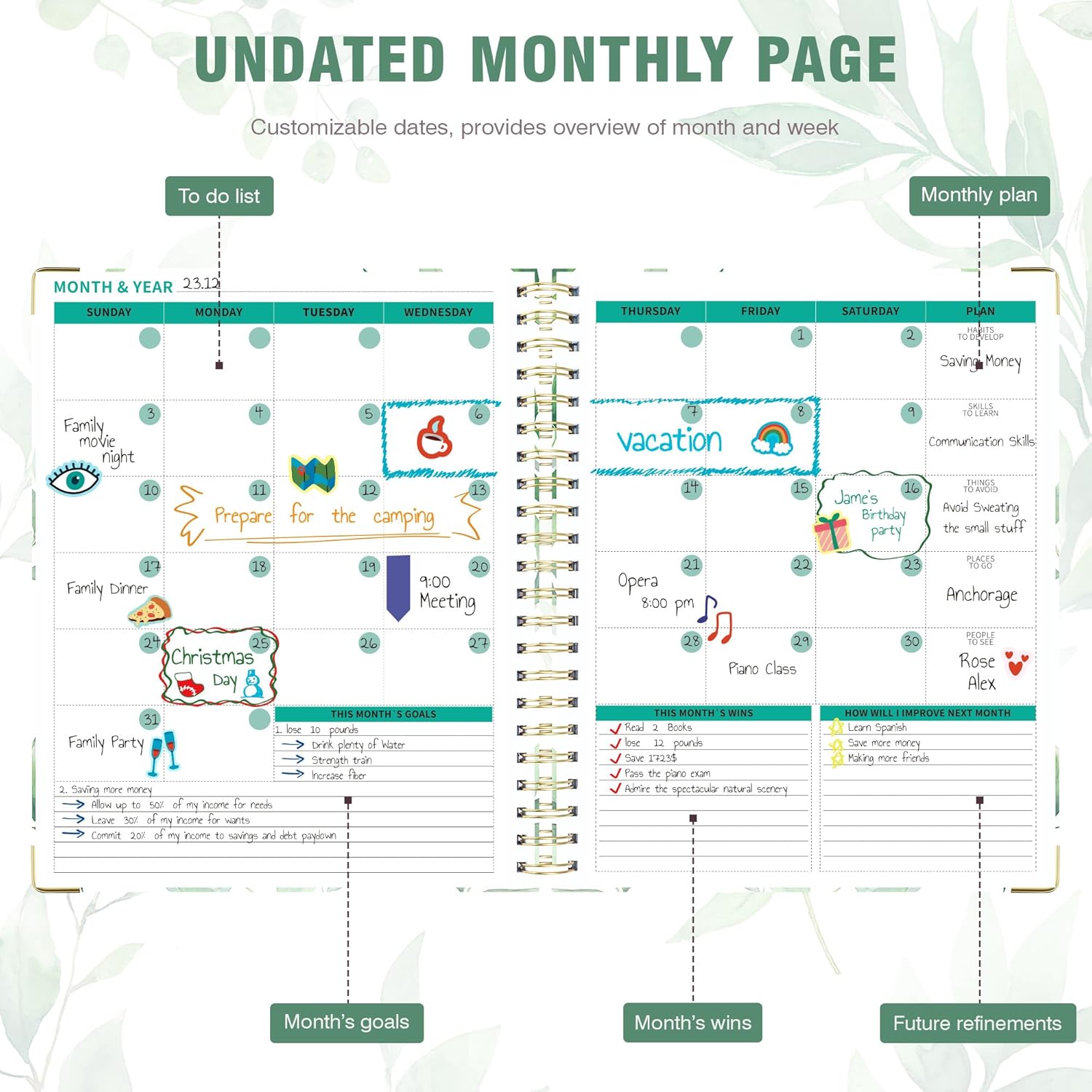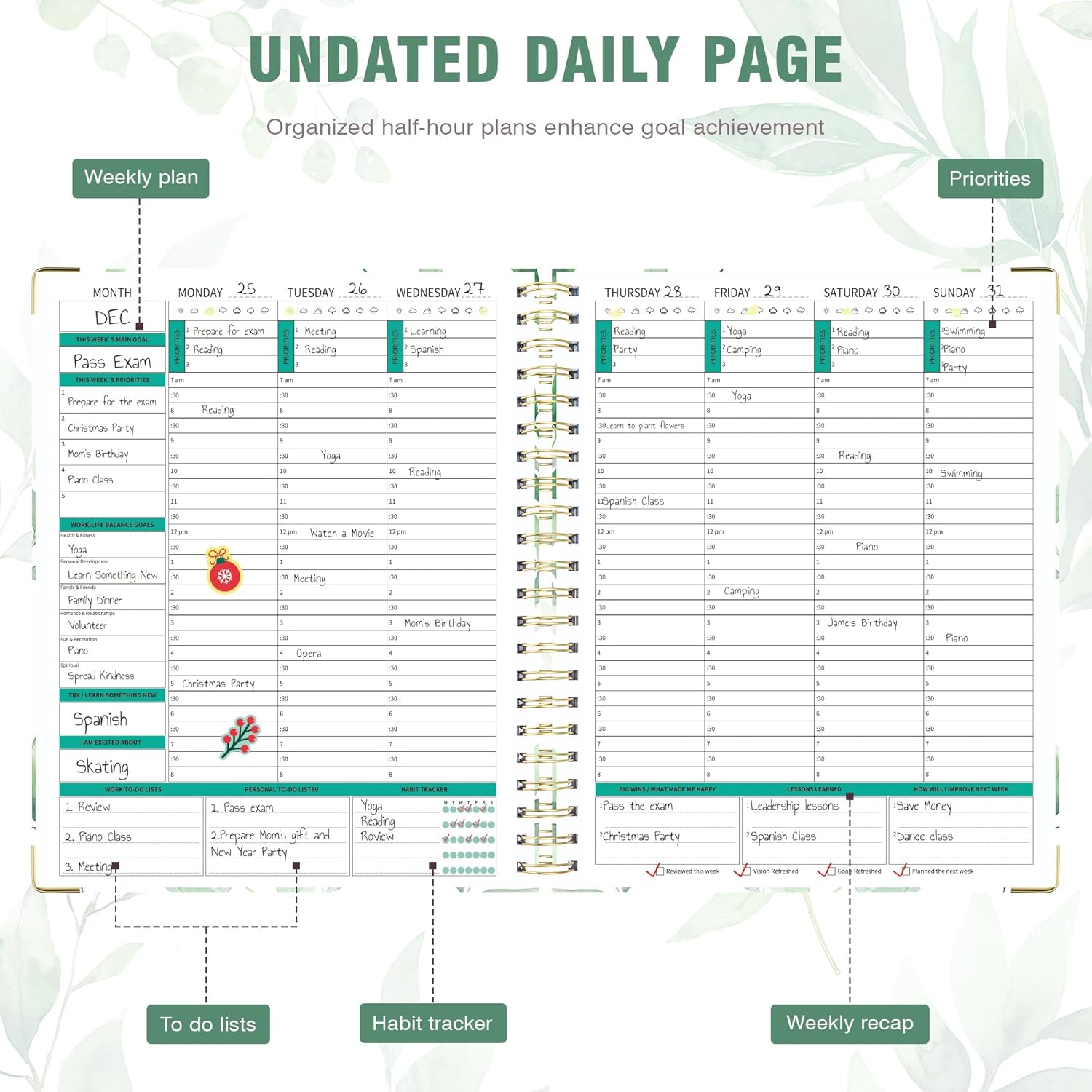 Ospelelf Undated Spiral Bound Planner Daily, Weekly and Monthly Planner 2025-2026, Work Planner 12 Month 8.5 x 11