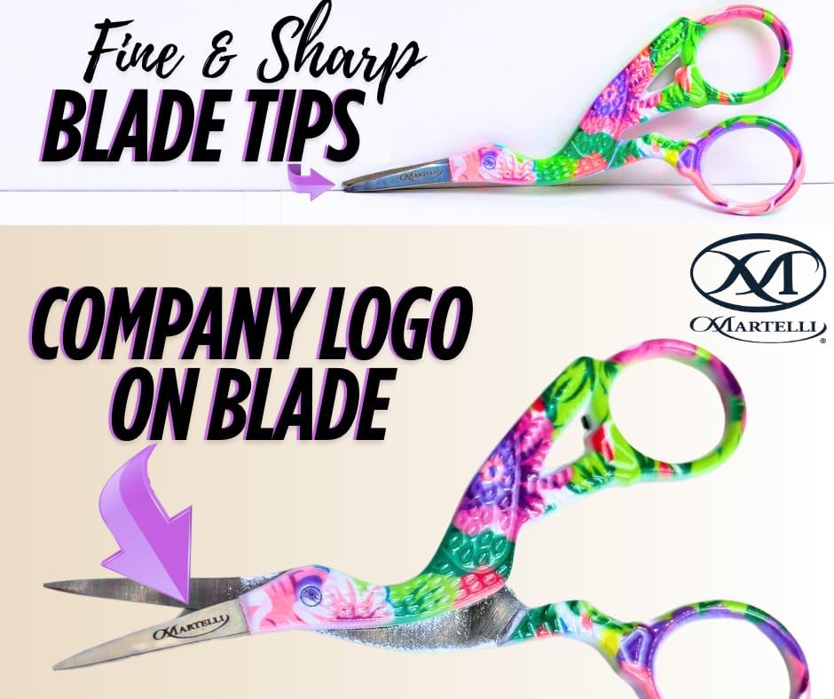 Martelli Hummingbird Embroidery Scissors, Floral Design, Fine Sharp Blade Tips, Precision Cutting Tool for Sewing and Quilting - great for precise cutting and tight spaces