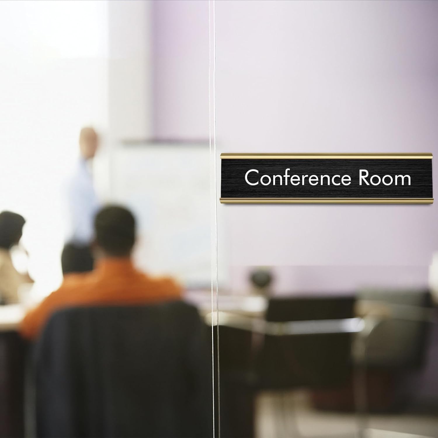 10 Pack Aluminum Name Plate Holders for Door or Wall, 2” x 8” Office Wall Mount Name Plate Holder with Textured Design and Double Sided Tape, for Office, Business, Meeting Room (Gold)