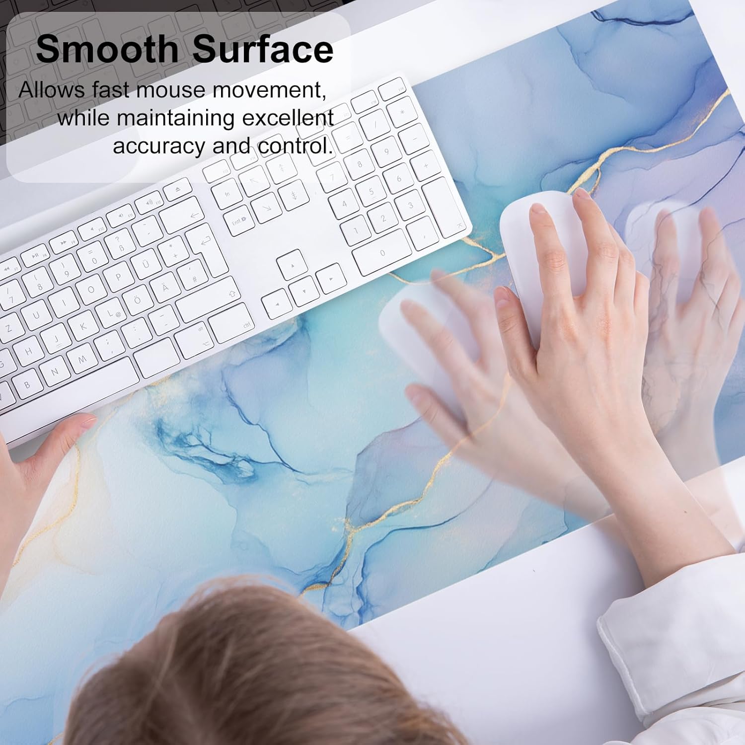- Smooth Surface - Smooth surface allows fast mouse movement while maintaining excellent accuracy and control. Premium material provides maximum comfort for your wrist while enjoy writing, typing, browsing, mouse sliding, gaming, and even sleeping on this mouse pad.