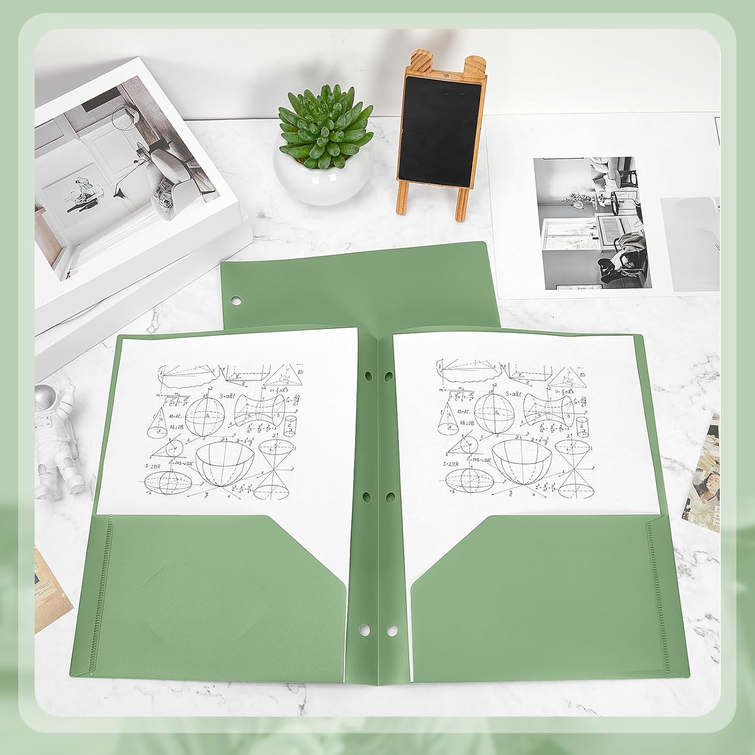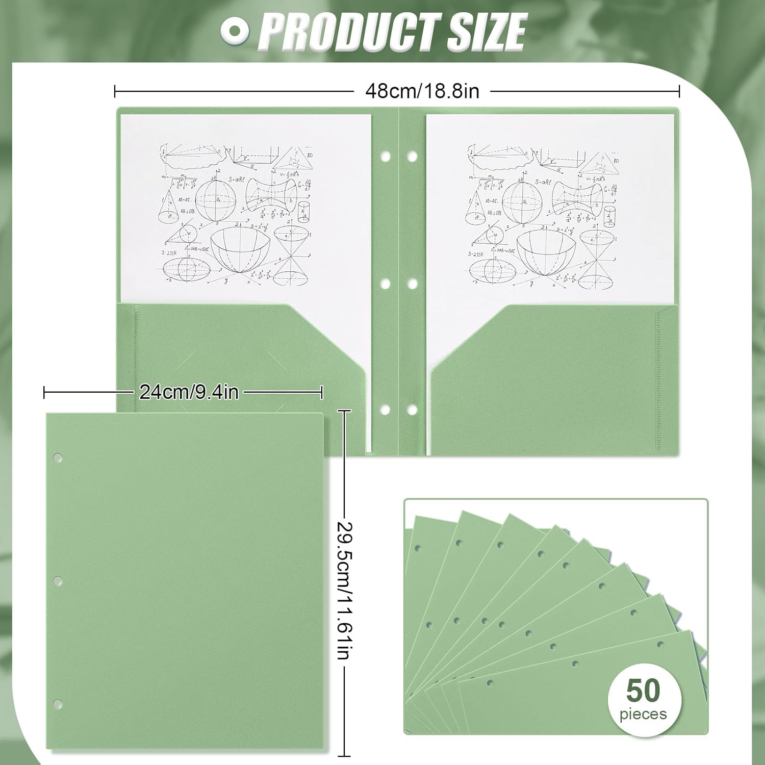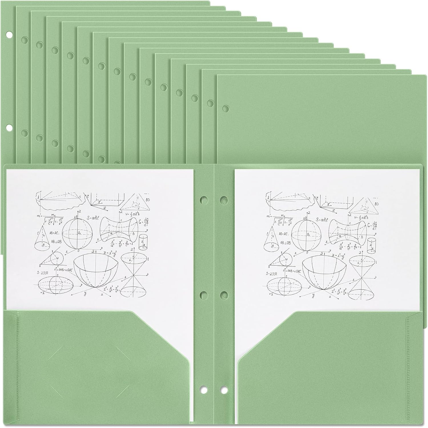 - Enough Quantity to Use and Replace: you will receive 50 pieces sage green plastic pocket folders, each with 3 holes and 2 pockets, fitting 3 ring binders and 8.5 x 11 inch letter size paper; Each pocket easily and neatly stacks 50 pages of letter size paper