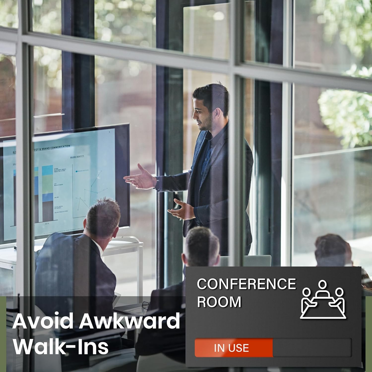 - Keeps Meetings Undisturbed: Prevent walk-ins with the visible occupied sign for your conference room. Ensure smoother meetings and a distraction-free environment by clearly showing room status.