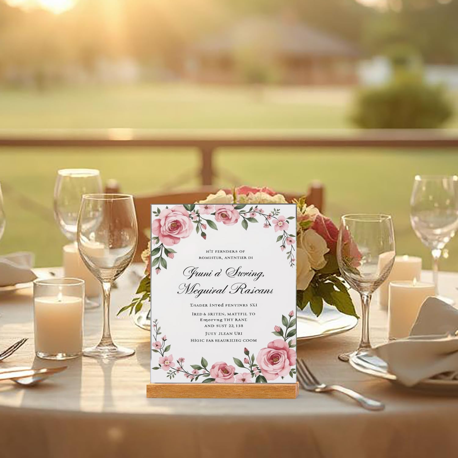 - VERSATILE DISPLAY: Clear acrylic panel with sturdy wooden base perfect for showcasing menus, photos, announcements, or promotional materials on any desk or counter