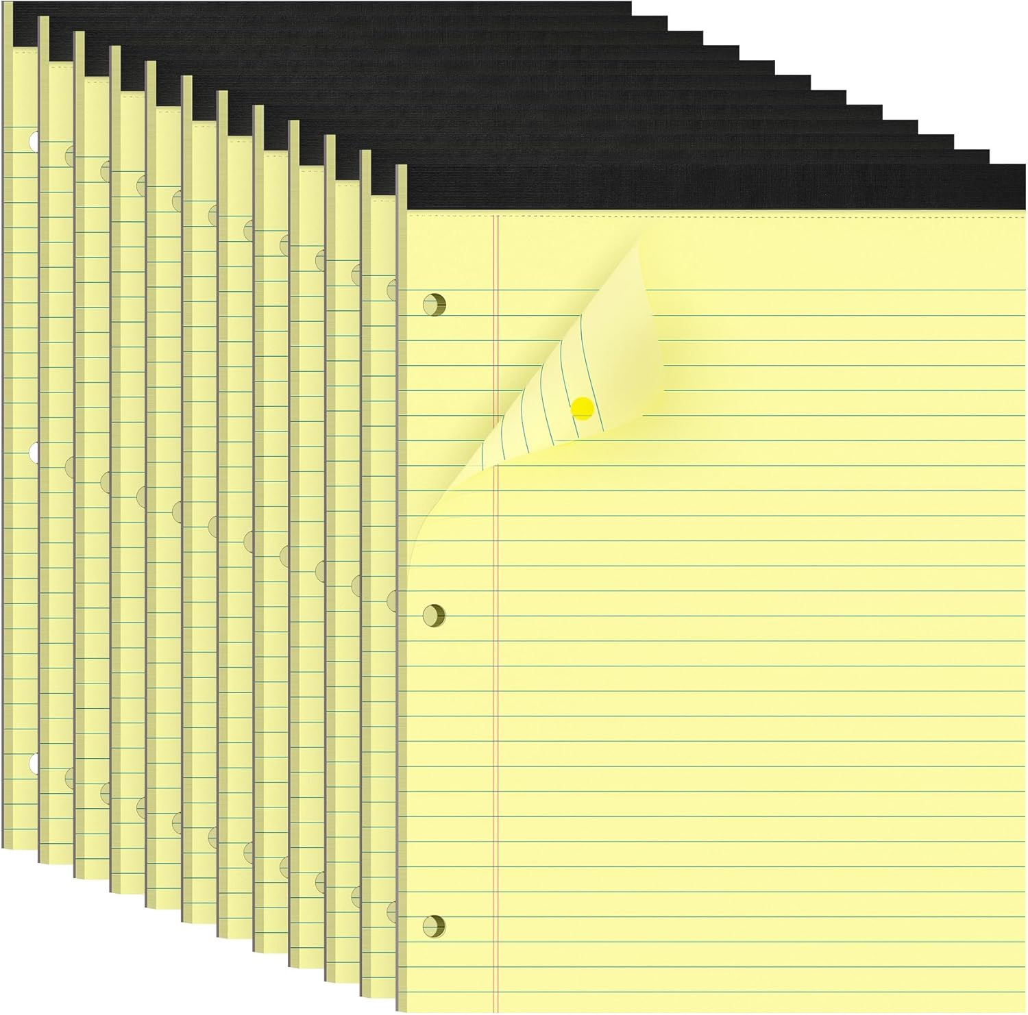 HAUTOCO 8.5 x 11 Legal Pads 12 Pack Yellow Wide Ruled Lined Writing Note Pads Perforated Notepad, 30 Sheets Per Notepad, 3-Hole Punched Paper for School, Office
