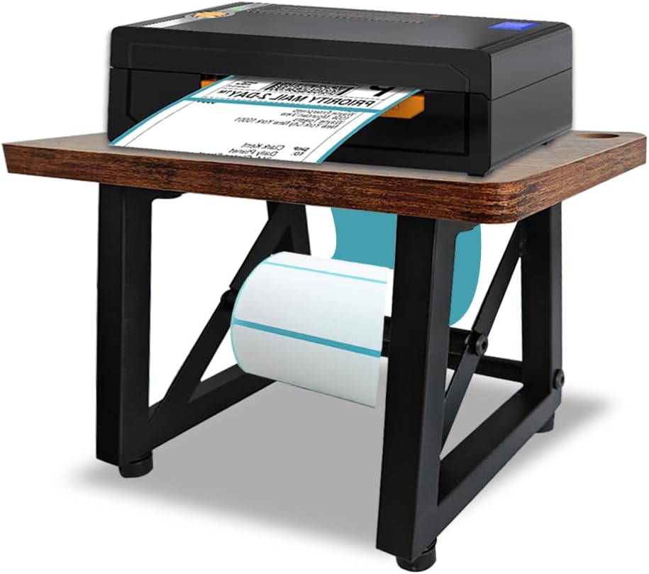 - All-in-One Label Holder: The XINQIDAI label stand accommodates both printers and labels. The top tier features slots on both sides for concealing power cords, while the lower tier includes a metal rod for mounting label rolls. Ensures an organized workspace.The length of the product pole is sufficient, the side bracket is installed against the inside, please install correctly!