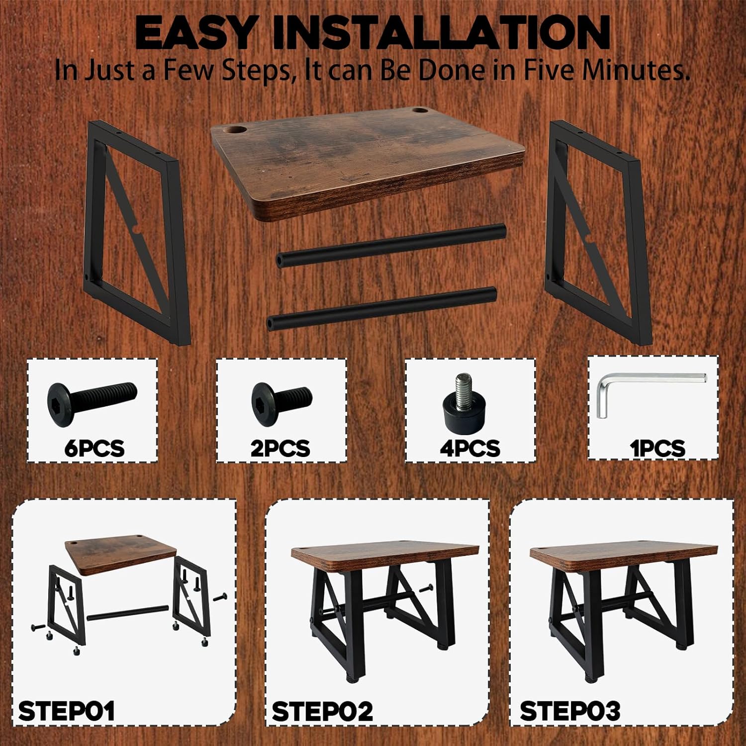 - Strong Construction & Long Lasting Durability: Made of high quality solid wood boards up to 0.6 inches thick and high-strength metal iron, it can hold up to 50 pounds, and the bottom is equipped with 4 height-adjustable non-slip pads to keep the product balanced and stable.