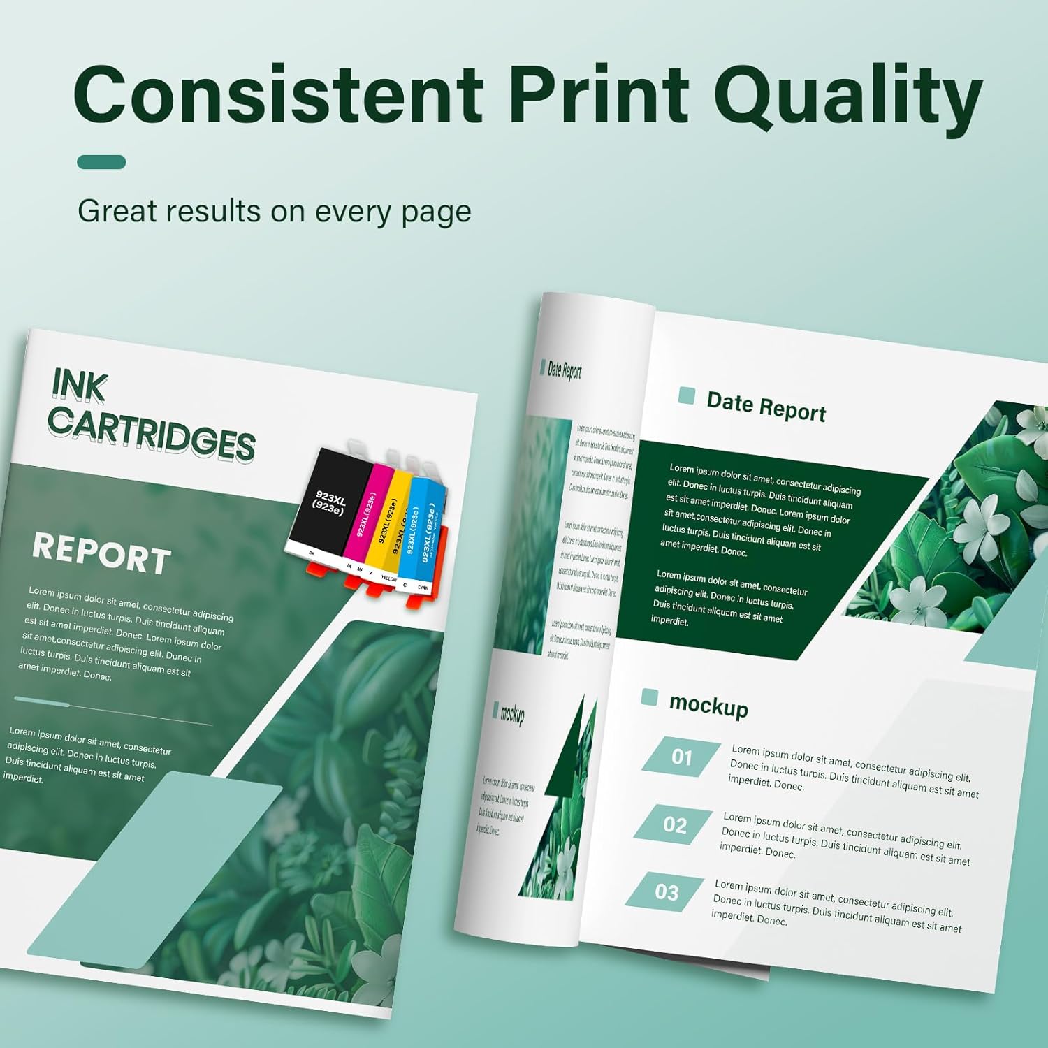 - High Page Yield: It yields up to 1,000 pages for each 923XL Black Ink and 800 pages for each 923XL Color Ink at 5% coverage (A4e letter)