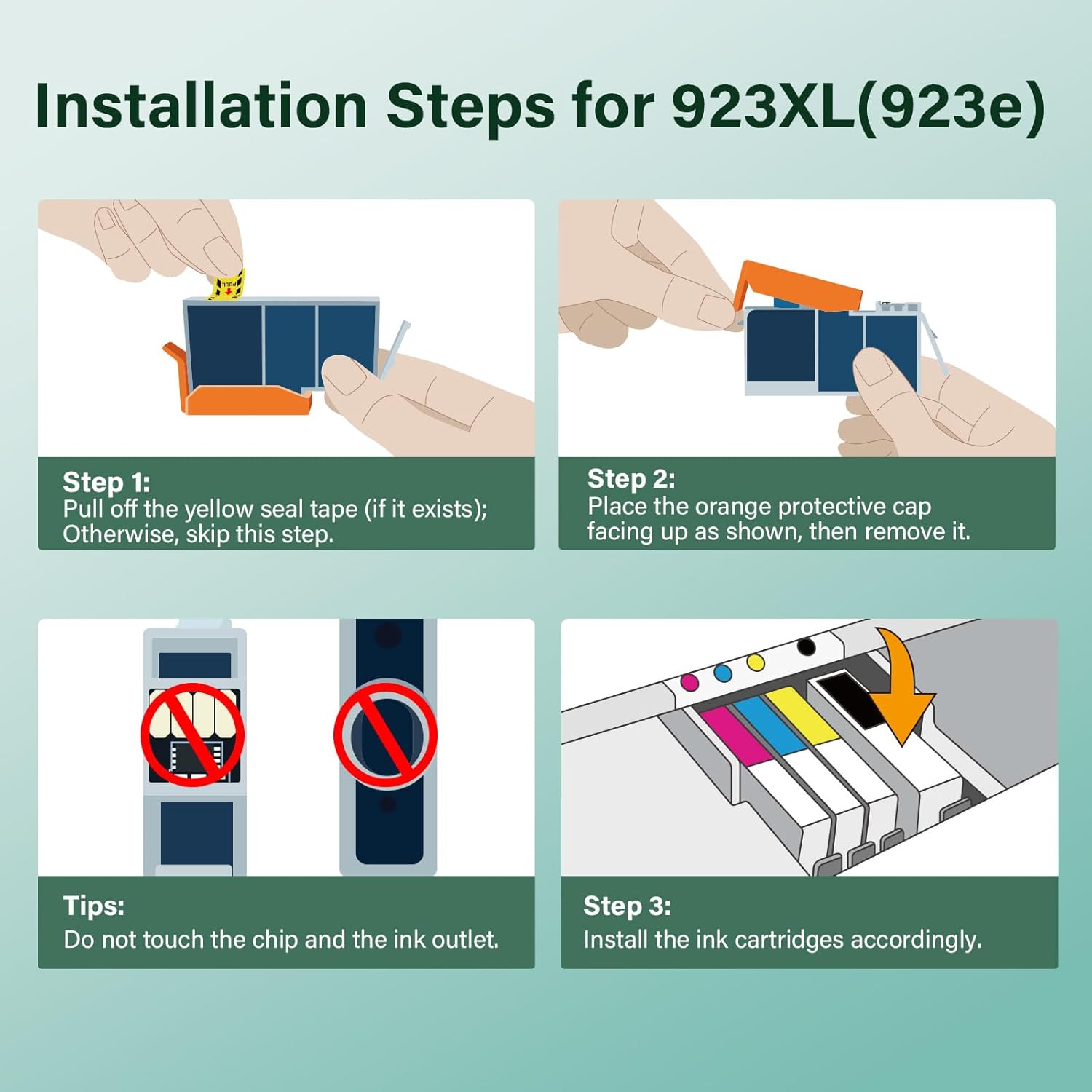 - Note: Please confirm compatible printers model before purchasing, this is not an OEM Ink 923XL Black and 923 Color Combo Pack for Printers Product