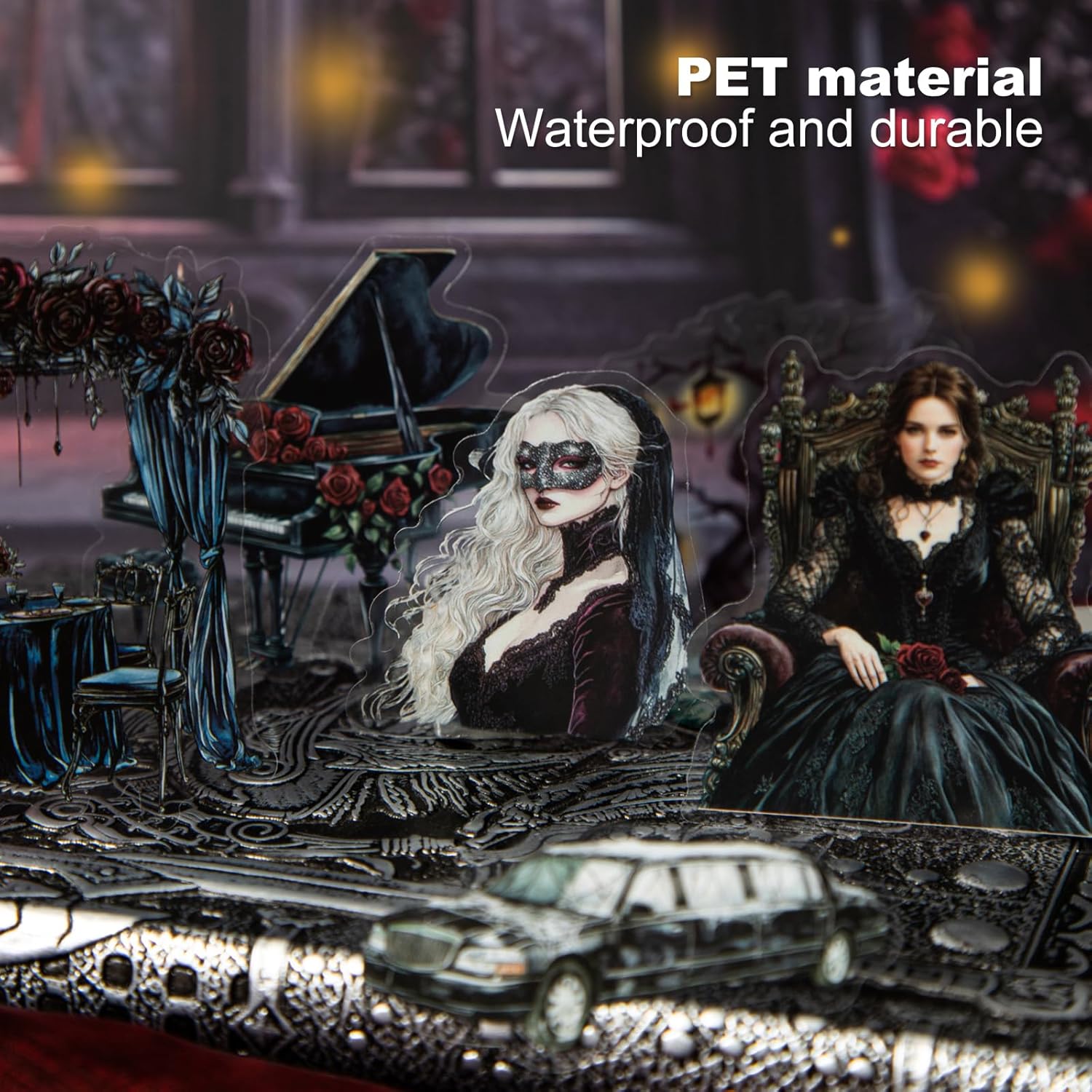 Dark Gothic Ballroom PET Sticker Set, 100PCS Vintage Dance Ephemera for Scrapbooking, Journaling, DIY Crafts, and Planner Supplies