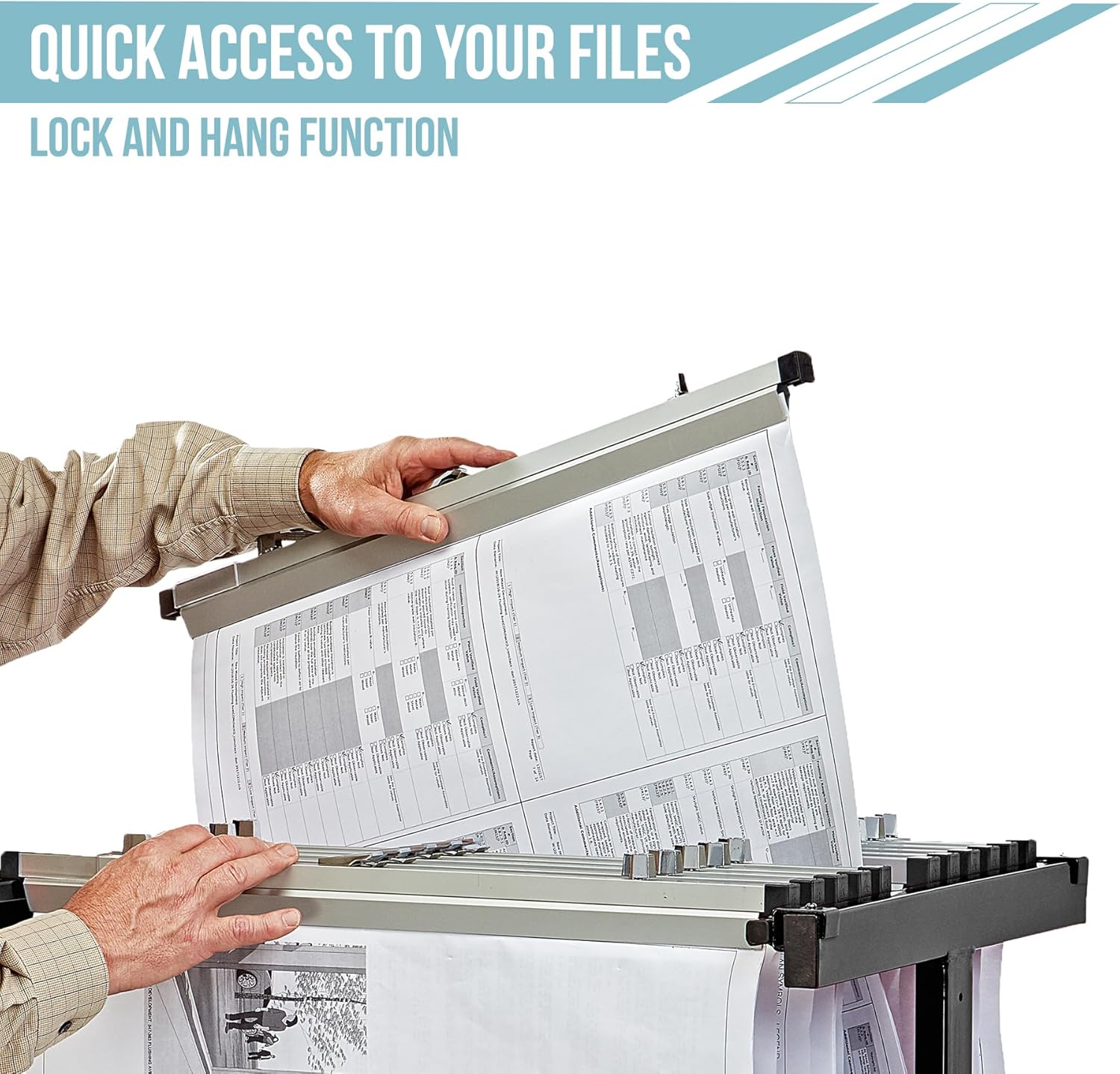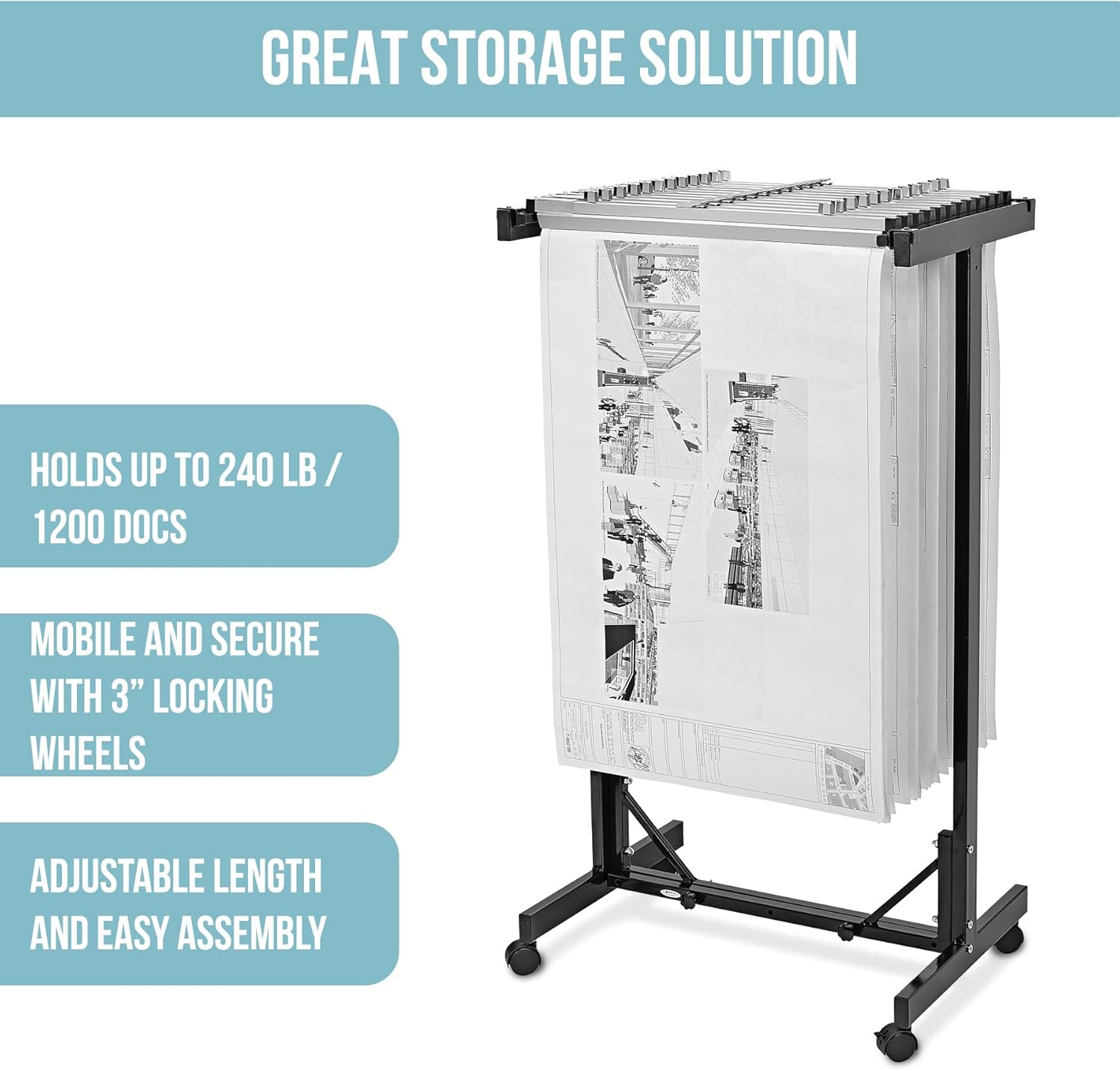 - Mobile and Adjustable Rack: The blueprint rack rolls smoothly on four casters, with front brakes for stability. Height and depth adjustments accommodate different file sizes, making it versatile for various office or job site needs.