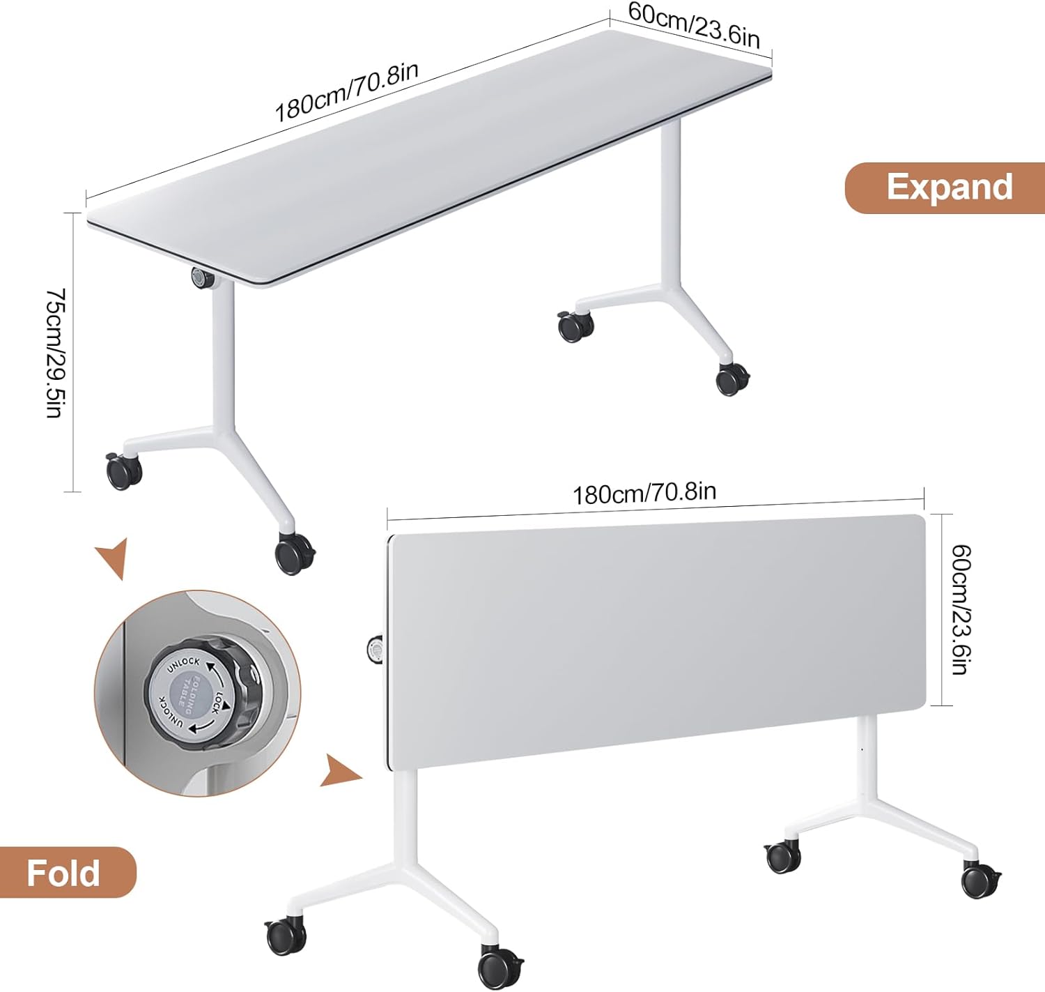- 【Ultra-Space Efficient Folding Design】Upgraded dual-sided folding lock system with ergonomic twist-release buttons enables one-person operation. The folding conference tables folds seamlessly into a compact unit within seconds, reducing storage space by 70% while maintaining scratch-resistant laminated surfaces. Stackable design perfect for multi-functional office environments.