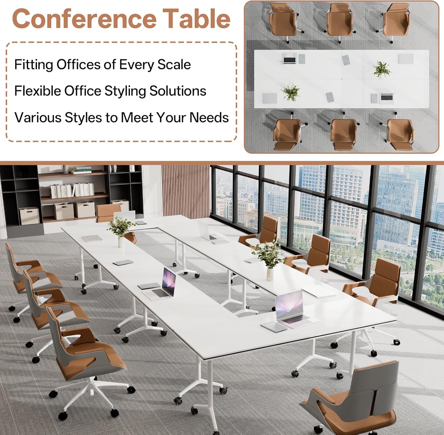 - 【Sturdy Conference Room Table】This folding conference room table is made of 25mm thick E1 grade environmentally friendly board and solid metal frame, which is durable and excellent in performance, ensuring stability and toughness, and strong load-bearing capacity. Designed to cope with frequent use, it is a reliable furniture for your daily business negotiations.