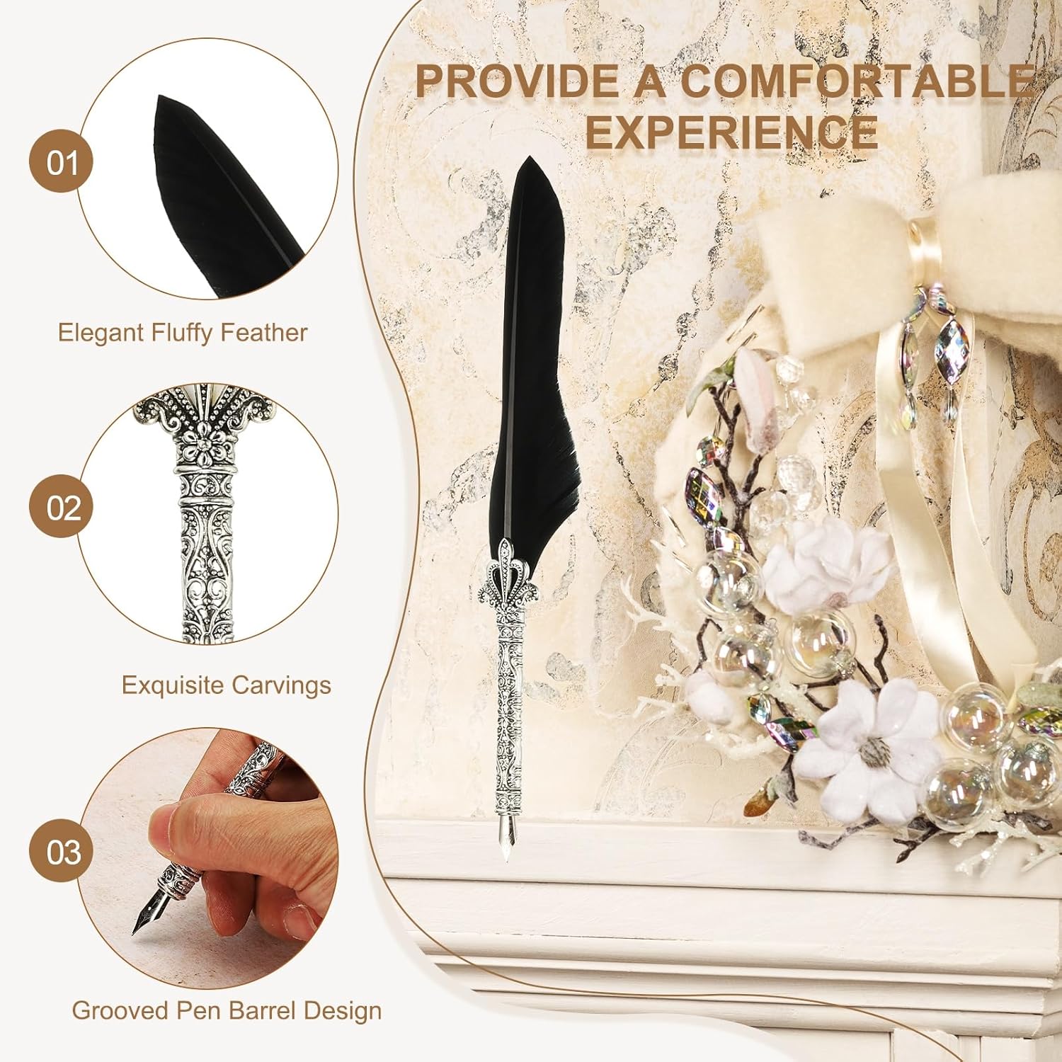 - This feather pen is widely used in weddings, parties, birthdays, invitations, anniversaries, offices, homes, etc. It can be used as an office supply or stationery for you to write, sign, and practice calligraphy to increase the fun of life.