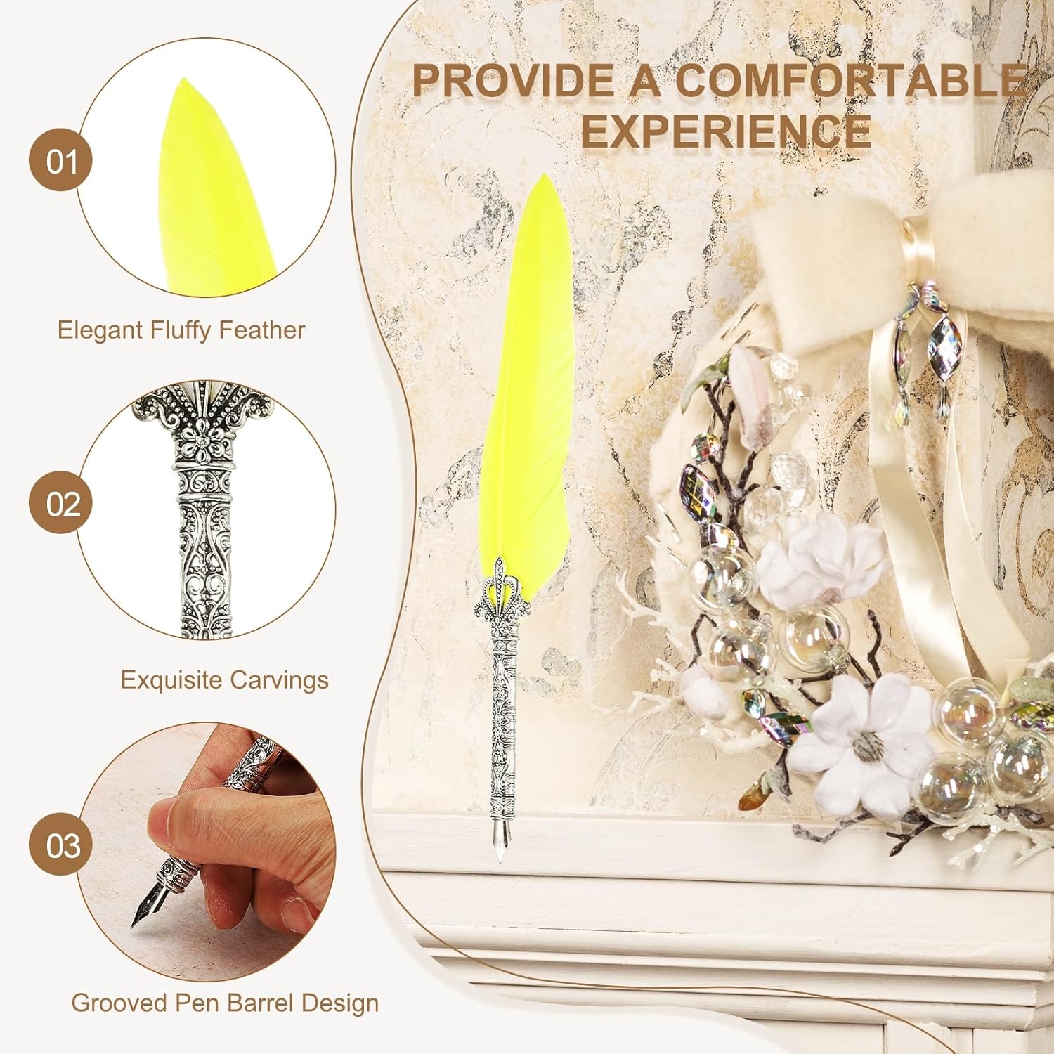 - This feather pen is widely used in weddings, parties, birthdays, invitations, anniversaries, offices, homes, etc. It can be used as an office supply or stationery for you to write, sign, and practice calligraphy to increase the fun of life.