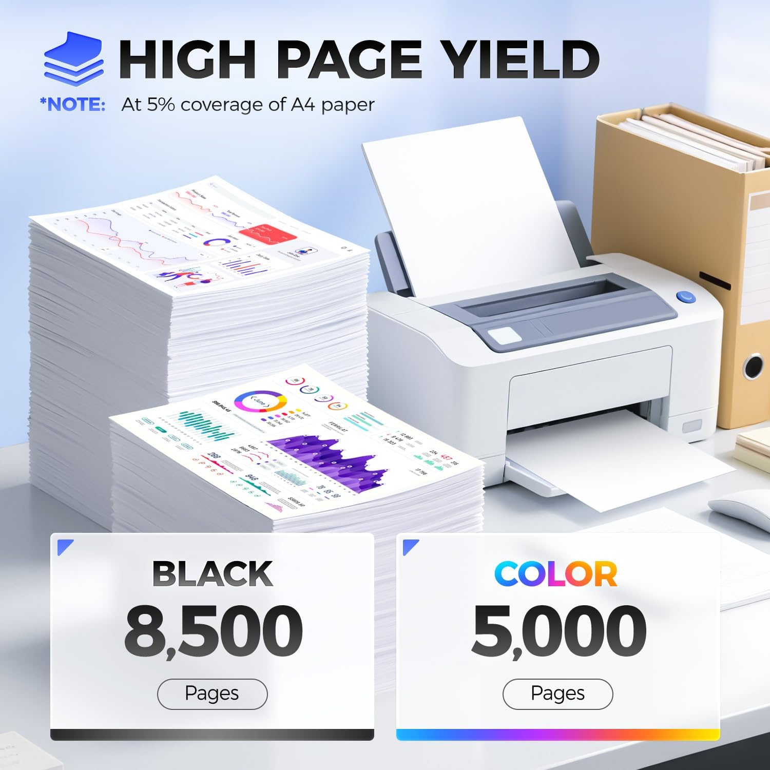 - High Page Yield: Up to 8,500 pages per black Toner Cartridge,up to 5,000 pages per color (at 5% coverage of A4 Paper),High Yield Version 78C1XK0 78C1XC0 78C1XM0 78C1XY0 Toner Cartridge.