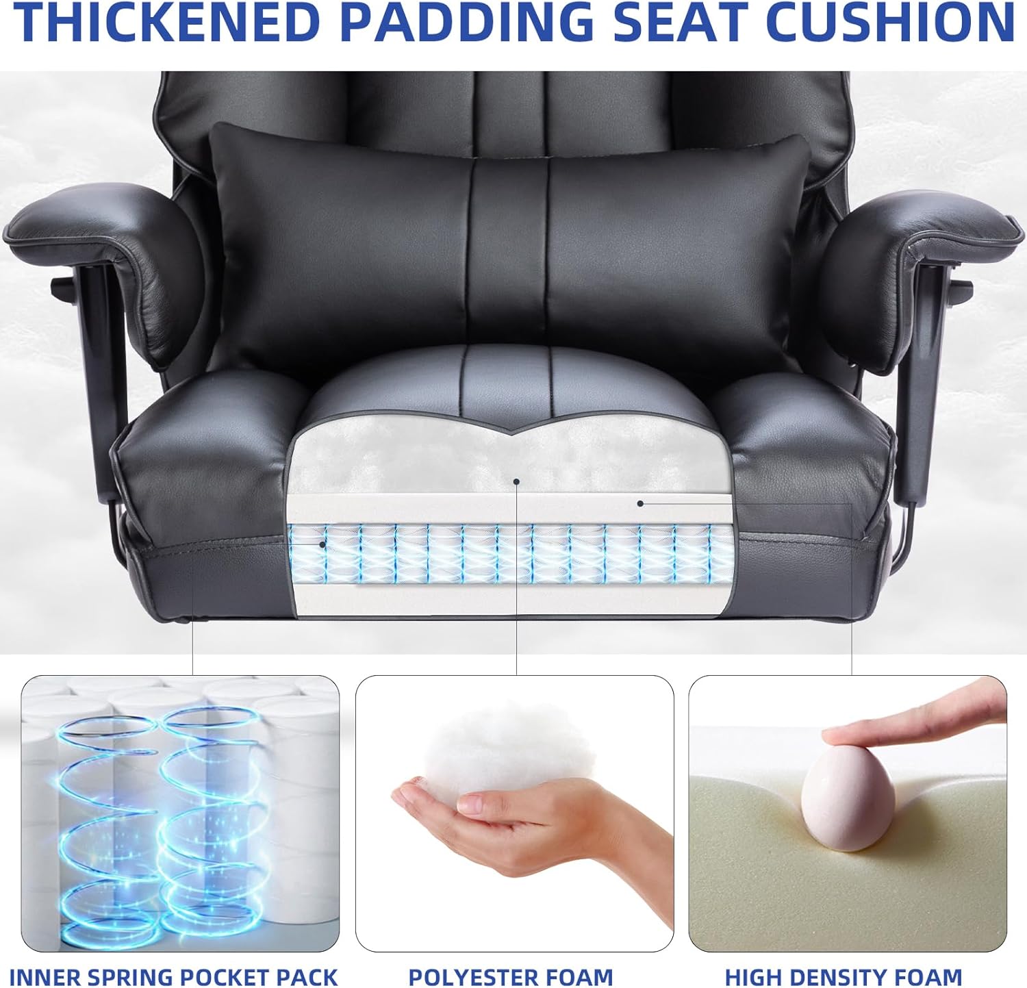 - 𝑪𝒐𝒎𝒇𝒐𝒓𝒕𝒂𝒃𝒍𝒆: Big and tall office chair features scratch-resistant PU leather. Task chair is easy to maintain. Big high back office chair filled with double-layer polyester foam and sponge seat and backrest provide unmatched comfort for all-day sitting.