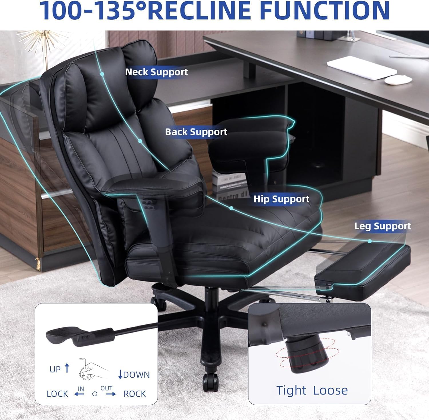 - 𝑺𝒂𝒇𝒆𝒕𝒚: Leather office chair built on a foundation of durability. Heavy-duty metal base and SGS-certified 4-Grade lift cylinder ensure not only steadfast executive chair with leg rest stability but also peace of mind with big and tall office chair every adjustment.