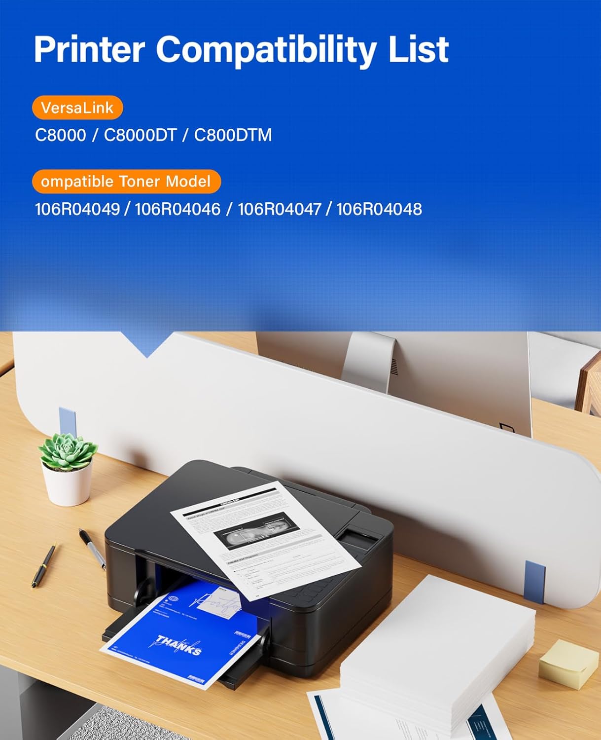 - Compatible Devices : Compatible for Xerox VersaLink C8000 C8000DT C800DTM series Printer. Compatible Toner Model:106R04049, 106R04046, 106R04047, 106R04048. Compatible for Xerox VersaLink C8000 C8000DT C800DTM series Printer. Compatible Toner Model:106R04049, 106R04046, 106R04047, 106R04048.