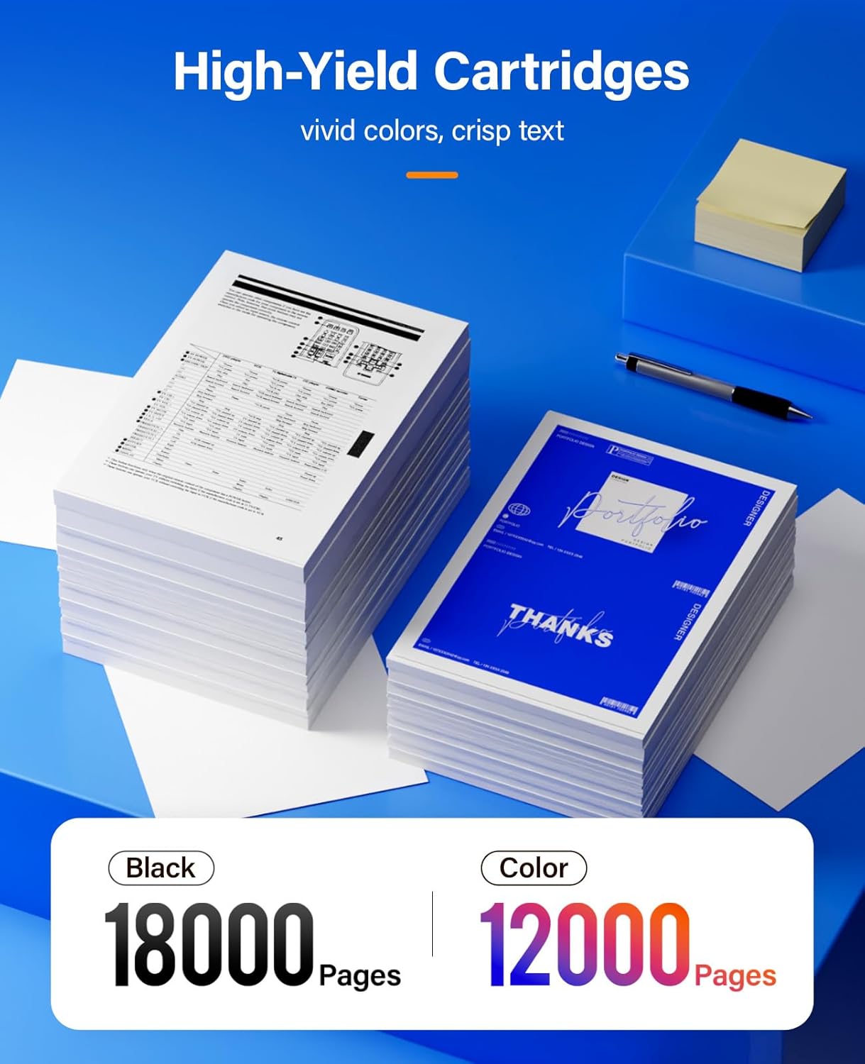 - High Page Yield: 18,000 pages for Black and 12,000 pages for Color toner cartridge (Letter/A4, at 5% coverage)
