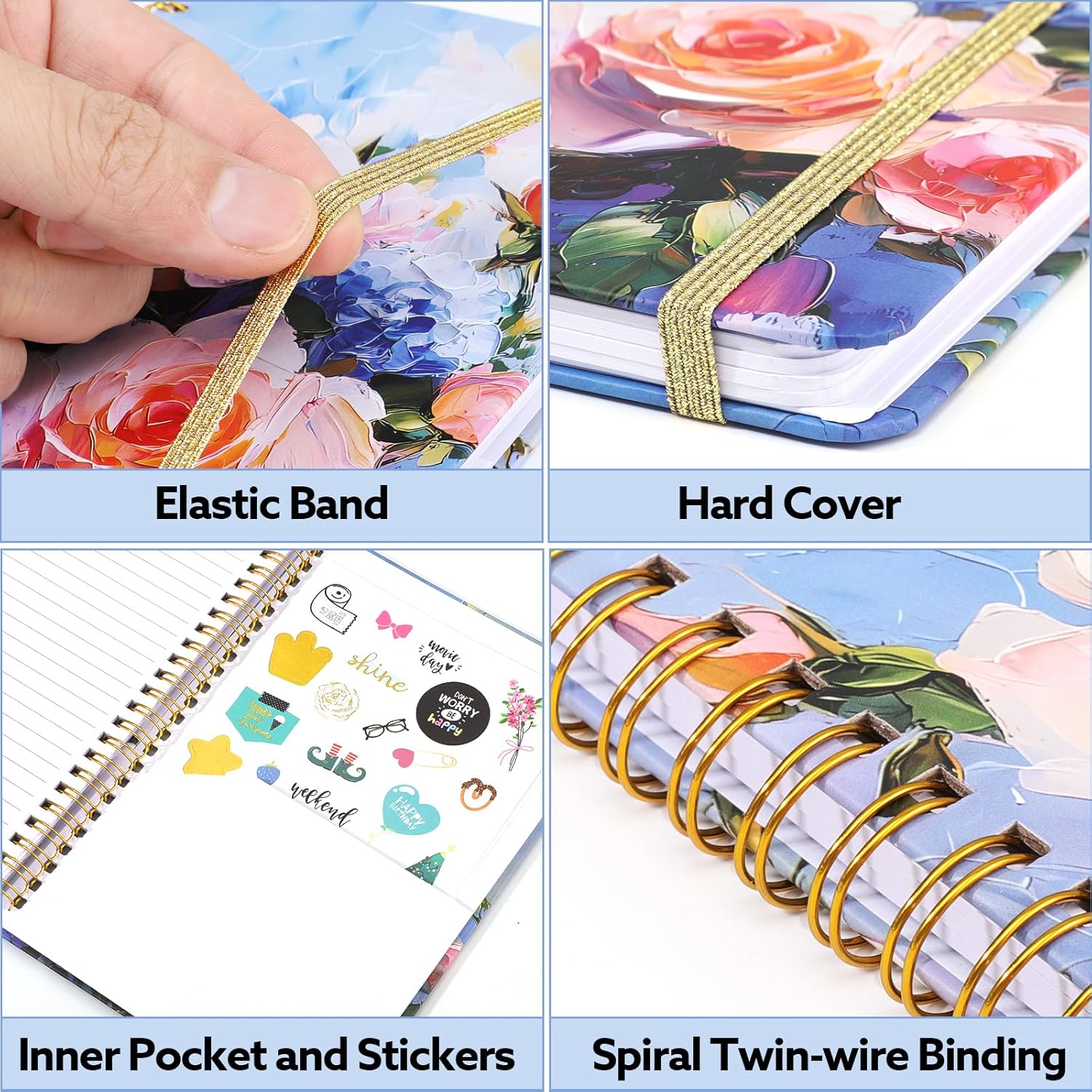Lined Spiral Notebook, 140 Pages College Ruled Journal for Women A5 Journaling Notebooks for Work & Note Taking Perfect for Men Women Office Home School, 5.9" x 8.3"-Pink Flower