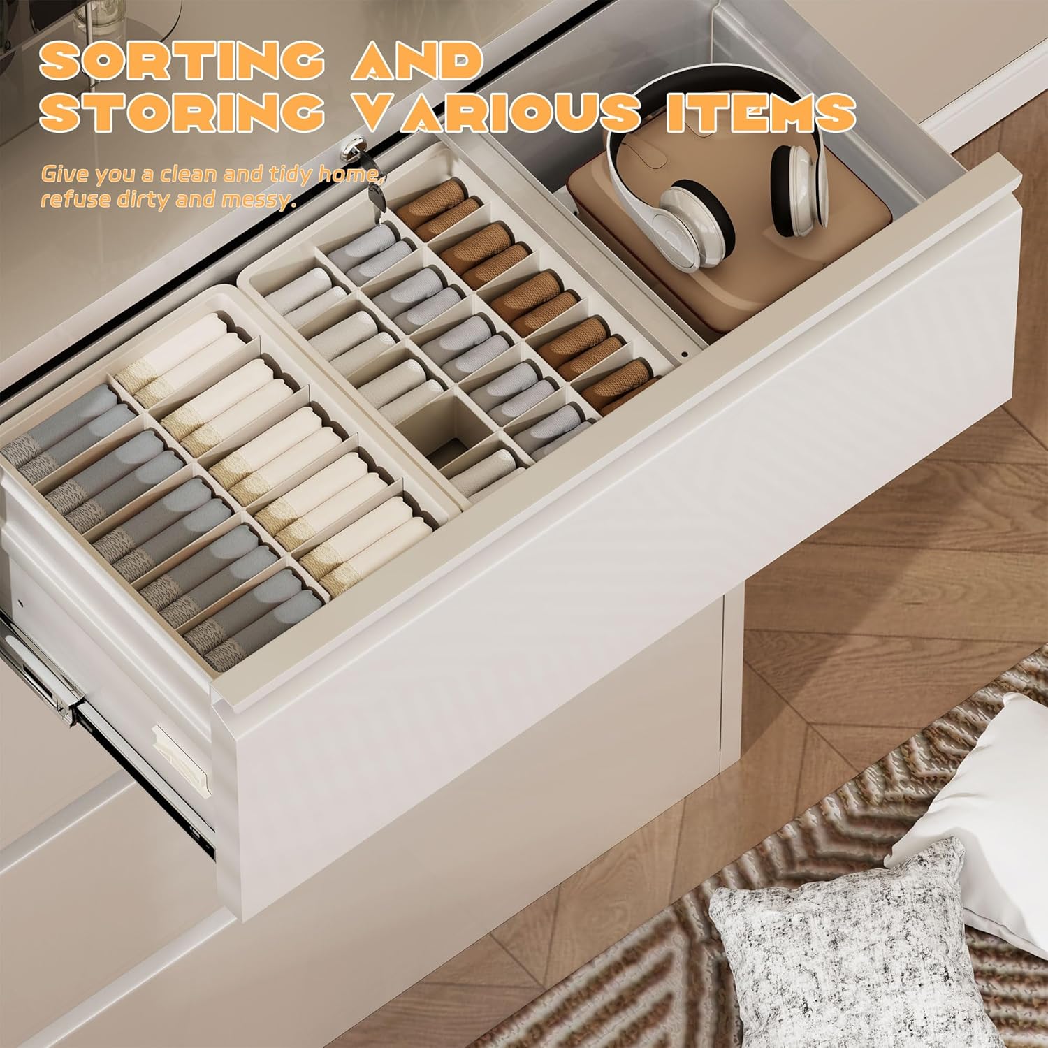- ❤ Smooth & Quiet Operation -- The white file cabinet have smooth rolling bearing drawers, the drawers open and close effortlessly without jamming or noise. The sound produced when pulling the drawer is below 20 dB, which can create a quiet working environment for you.